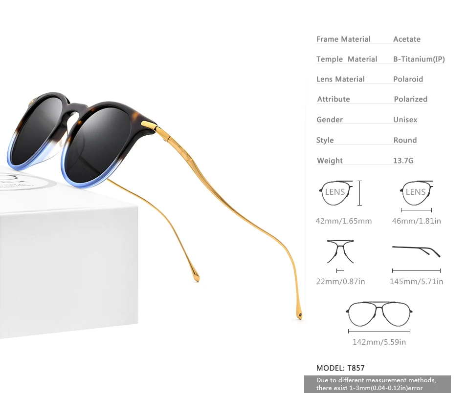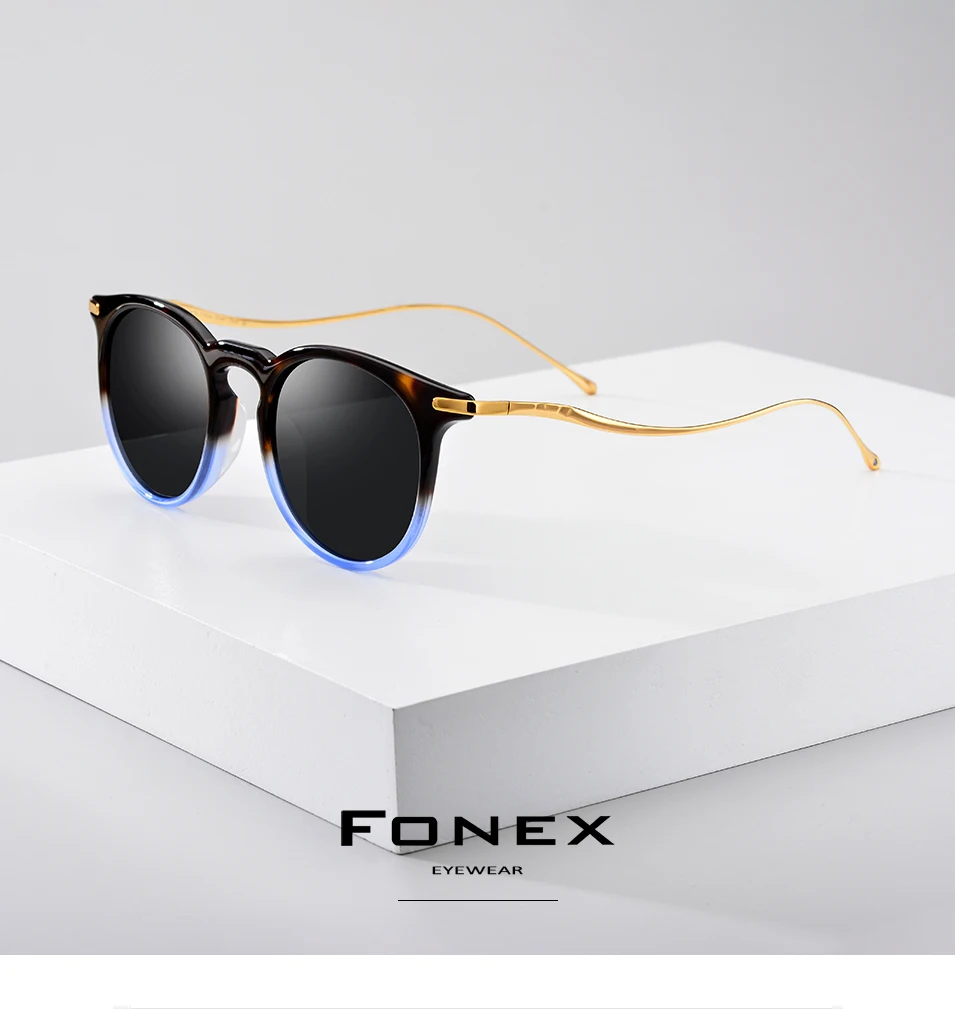 FONEX Очки солнцезащитные мужские и женские круглые из чистого тита...