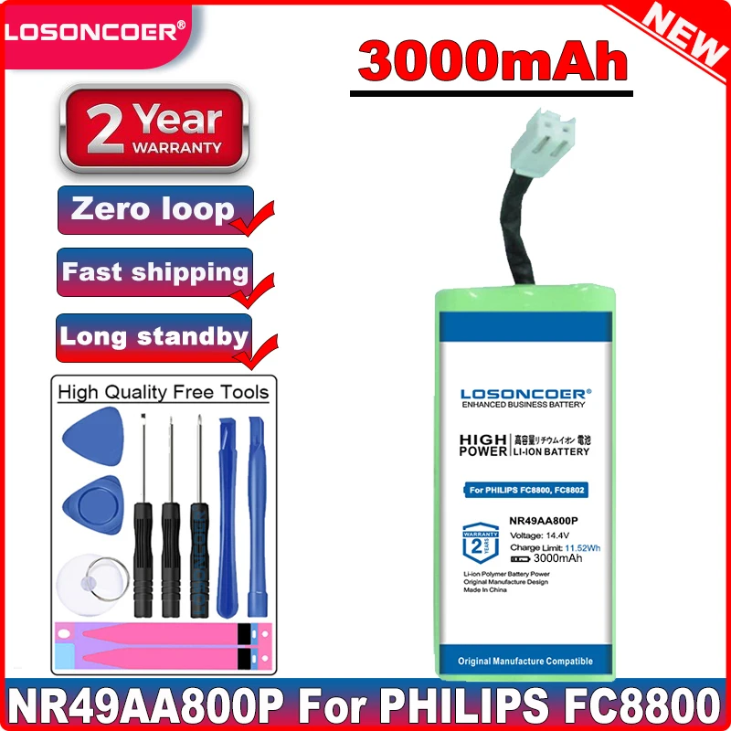 Аккумулятор LOSONCOER NR49AA800P 3000 мА ч для PHILIPS FC8800, FC8802, аккумулятор для робота-пылесоса