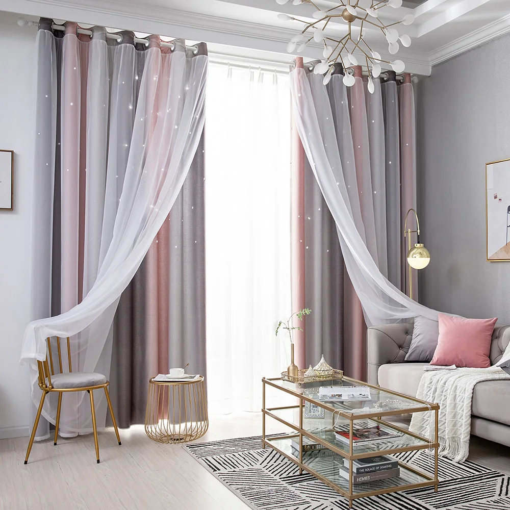 Светонепроницаемые шторы для детской, спальни, гостиной, цветные двухслойные шторы со звездами, шторы со звездами звезд