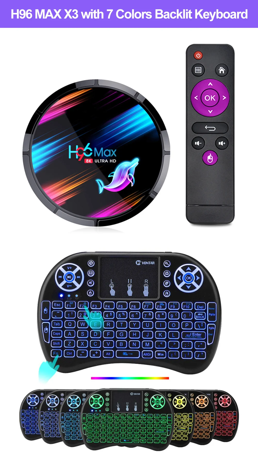 【Хайлайт】-CPU: четырехъядерный процессор Amlogic S905X3 ARM Cortex A55;-GPU: ARM Mali-G31MP;-ОС: Android 9,0;-Память: DDR3 4 Гб, флэш-память 32 ГБ/64 Гб/128 Гб;-Поддержка H.265, 8K @ 24fps, 4K @ 60fps, HD 2,1, USB3.0;-Поддержка: Gigabit Ethernet, 2,4 & 5G Dual Wifi + AC, BT4.0;-Поддержка: Youtube HD 4K;-Поддержка беспроводного обновления (OTA).-Есть три варианта для H96 MAX X3:A: 4G + 32G + двойной Wifi + BT4.0 + 1000MB: 4G + 64G + двойной Wifi + BT4.0 + 1000MC: 4G + 128G + двойной Wifi + BT4.0 + 1000M【 Пакеты 】-1 x H96 Max X3 коробка-1 пульт дистанционного управления-Источник питания-1 шт.-Кабель HD-1 шт.-Руководство пользователя-1 шт.【 Фотографии 】