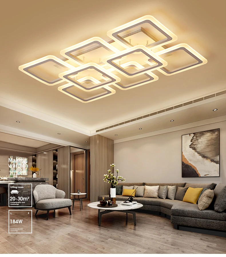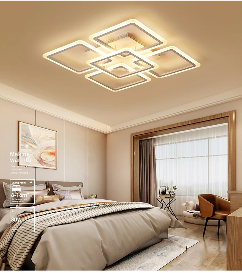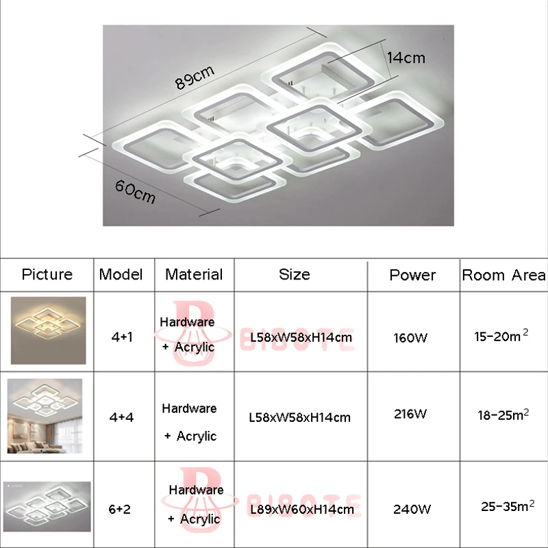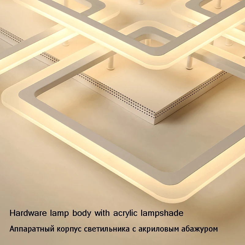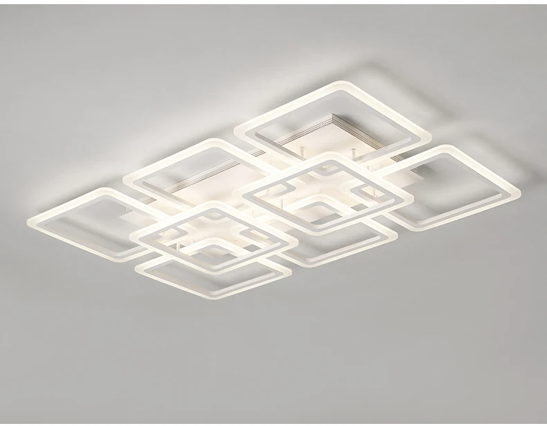 Современная светодиодный ная люстра, потолочные люстры, освещение для гостиной, спальни, кухни, блеск с пультом дистанционного управления, светильники Материал: фурнитура + акрил Размер: 4 + 1 L58XW58xH14cm, мощность, 160 Вт 4 + 4 L58XW58xH14cm, мощность, 216 Вт 6 + 2 L89XW60xH14cm, мощность, 240 Вт Источник света: светодиодный чип SMD Цветовая температура: теплый белый/холодный белый/Регулируемая яркость (Теплый белый: без пульта дистанционного управления; Холодный белый: без пульта дистанционного управления; Регулируемая яркость: это означает, что свет может контролировать цвет и яркость лампы, с пультом дистанционного управления) Цвет корпуса: белый, как на фото