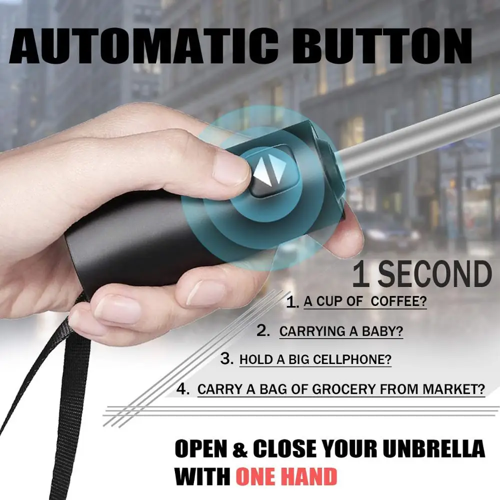 ☂【Чрезвычайно удобный】: наш складной зонт имеет полностью автоматизированную систему, идеально подходит для работы одной рукой. Просто откройте или закройте Зонт нажатием кнопки. Легко переносить, не занимая много места. Подходит для женщин и мужчин для путешествий и активного отдыха.