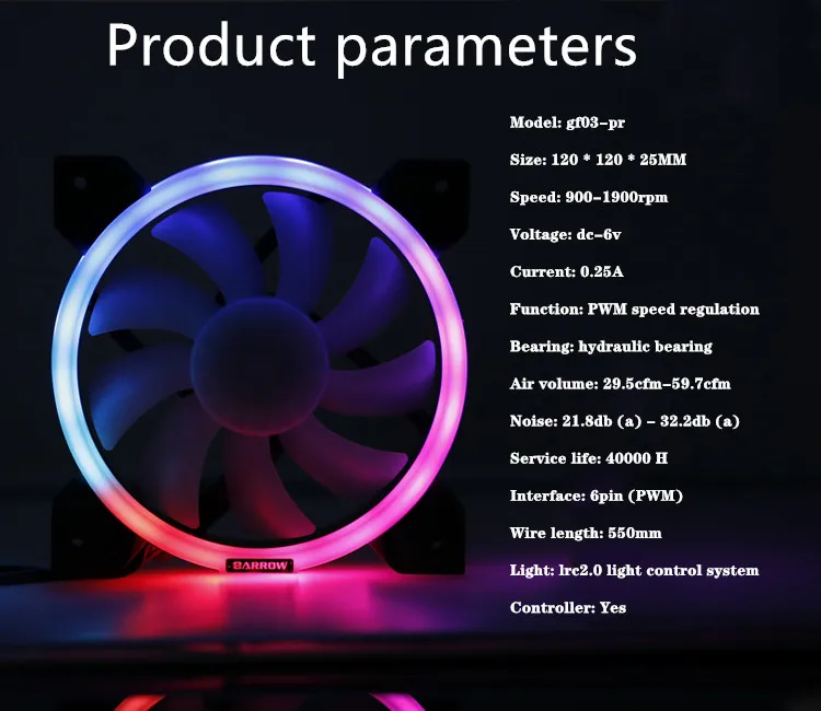 Barrow BF03-PRBF04-PR LRC2.0 (5В 6pin) PWM вентиляторы, вентиляторы радиатора водяного охлаждения, гидравлические подшипники, регулируемое кольцевое освещение
