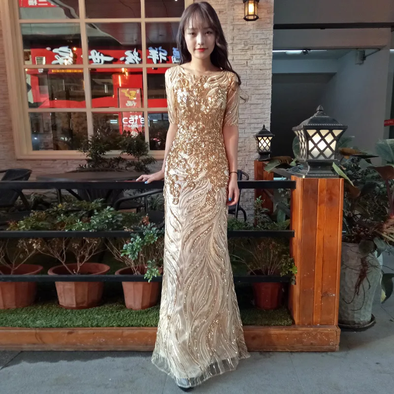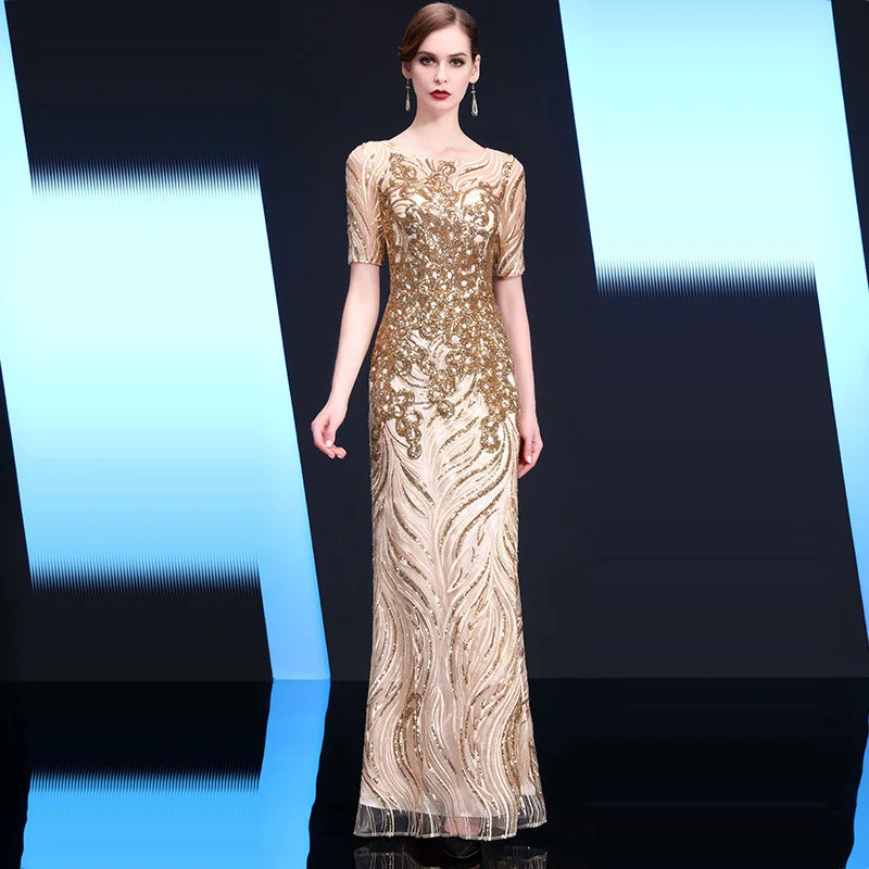 Женское вечернее платье с блестками It's Yiiya, белое прямое платье до пола с коротким рукавом и круглым вырезом на лето 2020