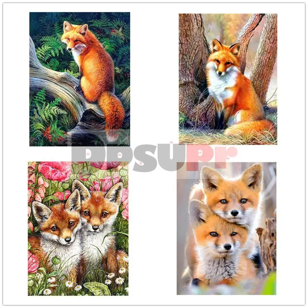 Dpsupr Алмазная вышивка DIY Алмазная картина крестиком набор "животное лиса цветок" 5D рукоделие домашнее украшение с бриллиантами