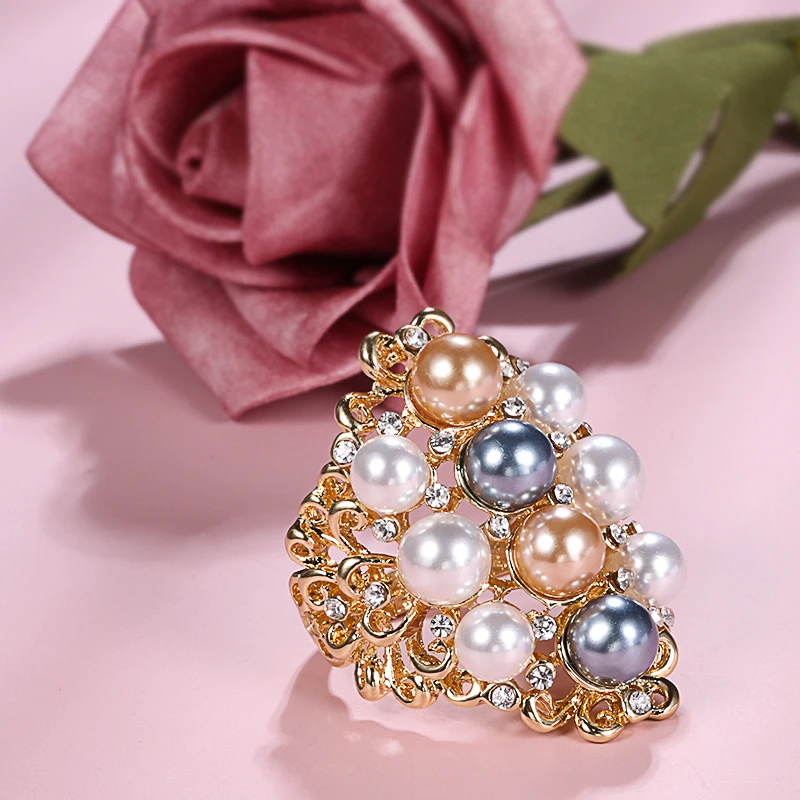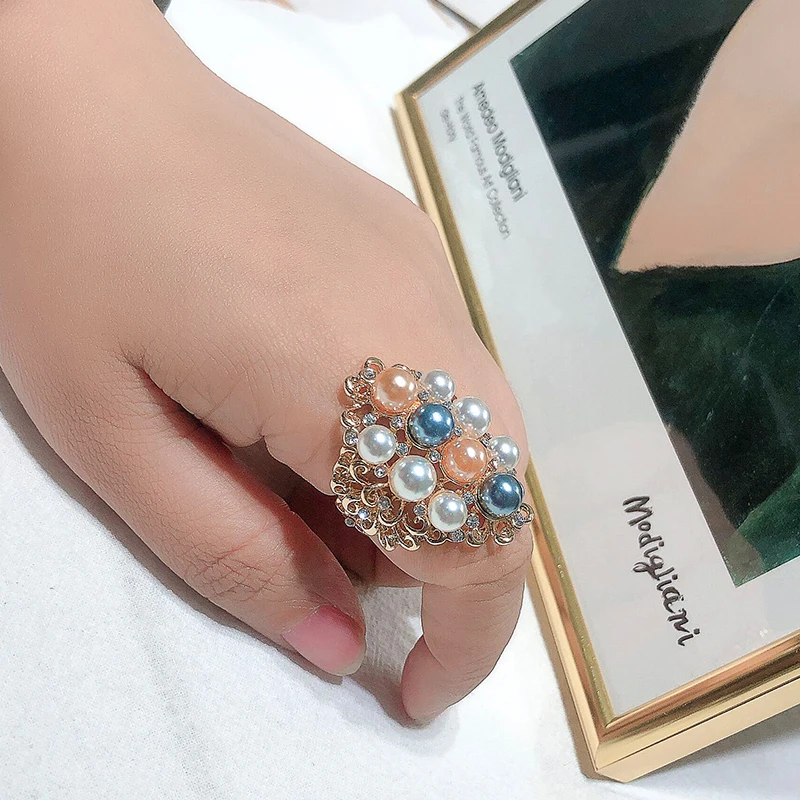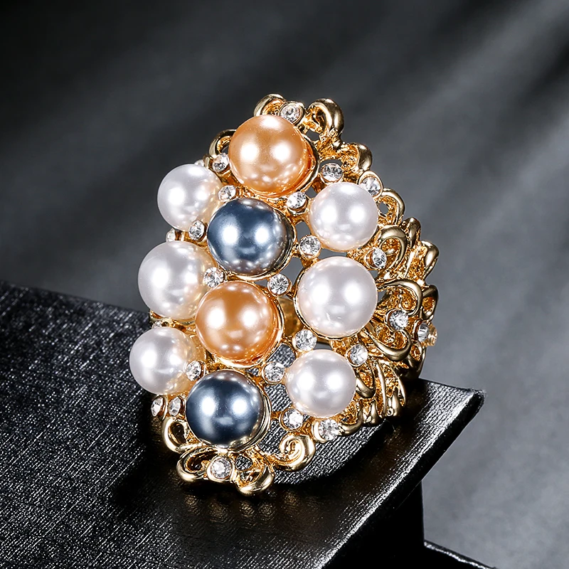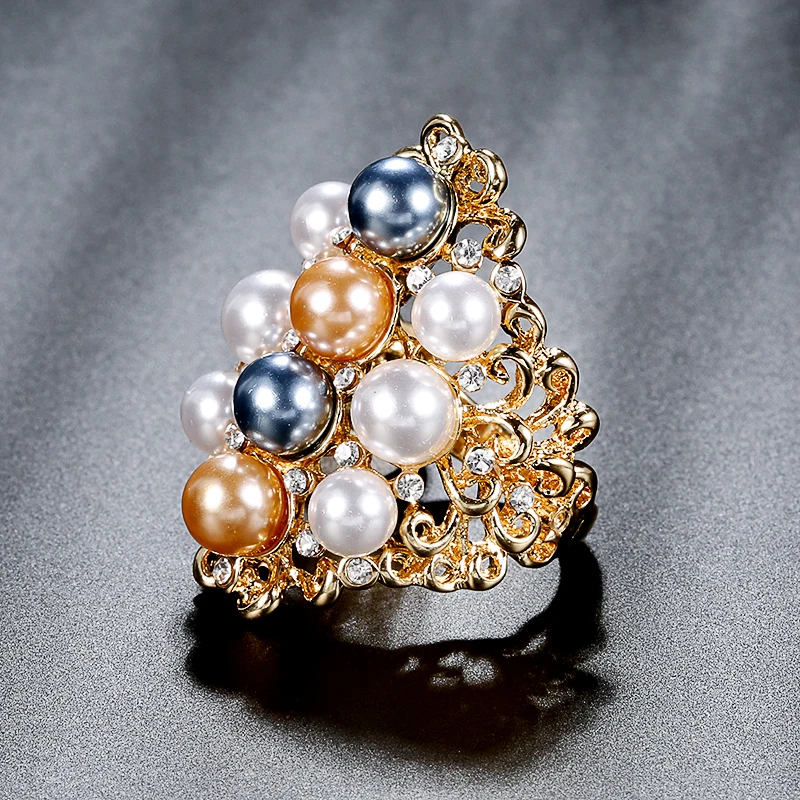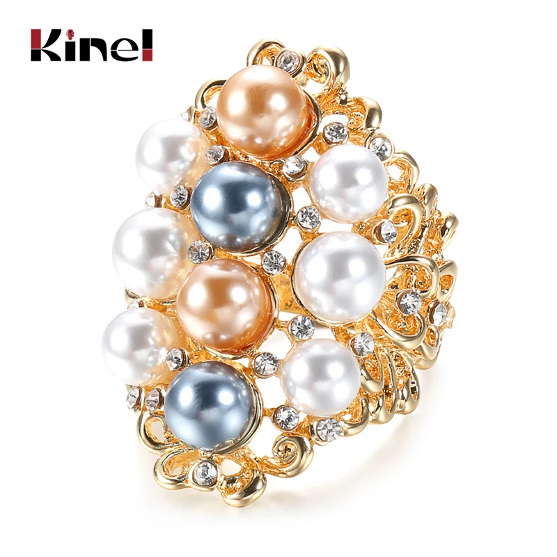 Модное большое кольцо Kinel с жемчугом золотого цвета, свадебные кольца с полыми кристаллами и цветами, роскошные Винтажные Ювелирные изделия для вечерние