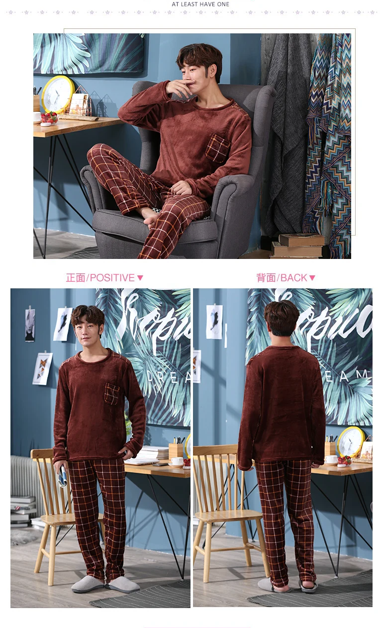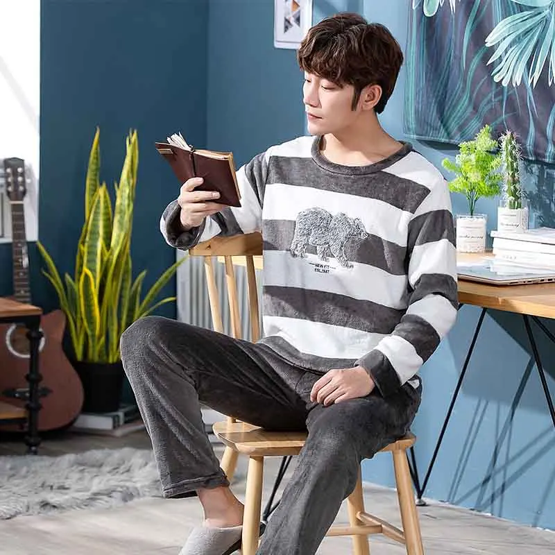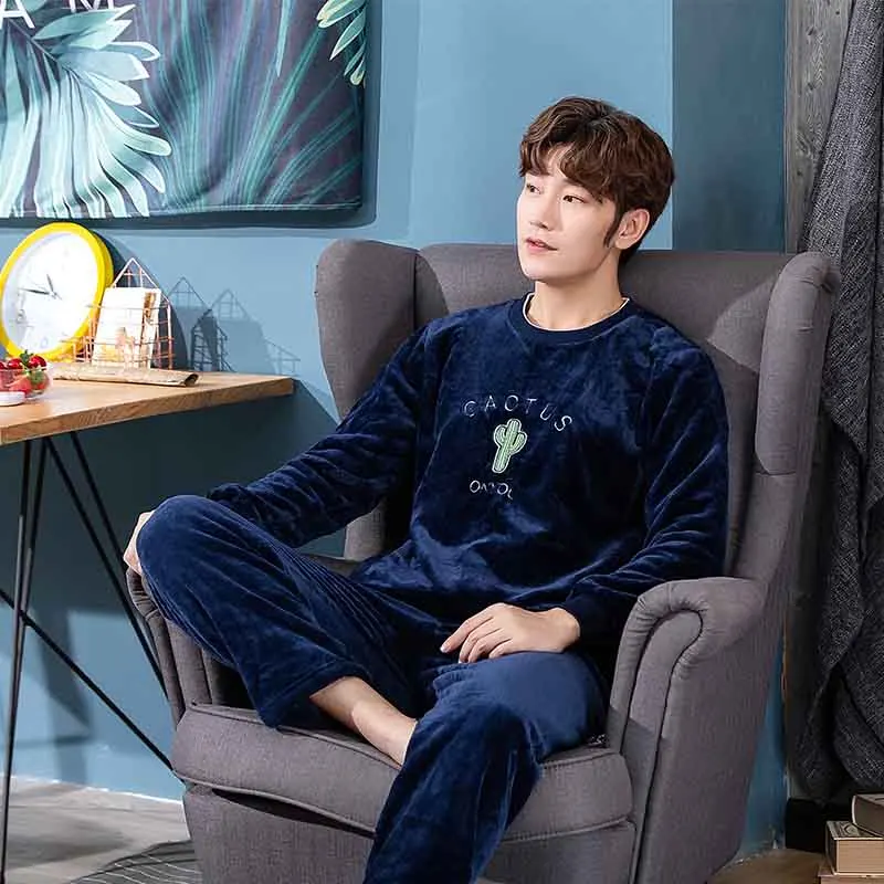 Новинка 2020, стильный мужской пижамный комплект, осенне-зимний теплый фланелевый утепленный мужской пижамный комплект, одежда для сна с длинным рукавом + штаны для отдыха