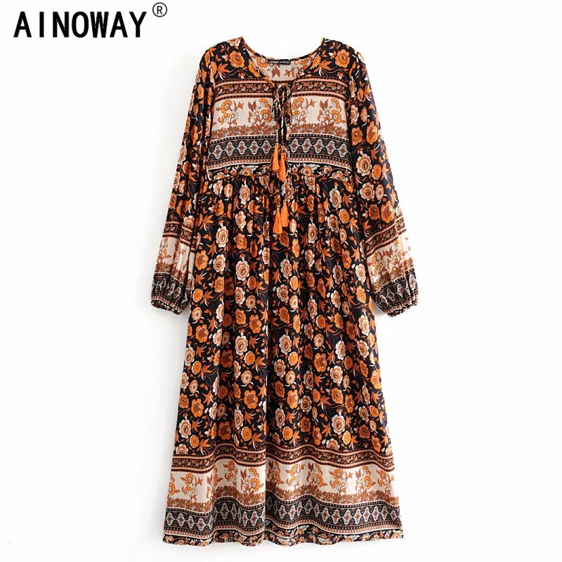 Винтажное шикарное модное женское платье в стиле хиппи с цветочным ...