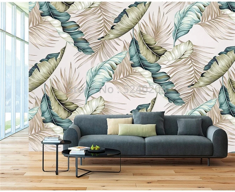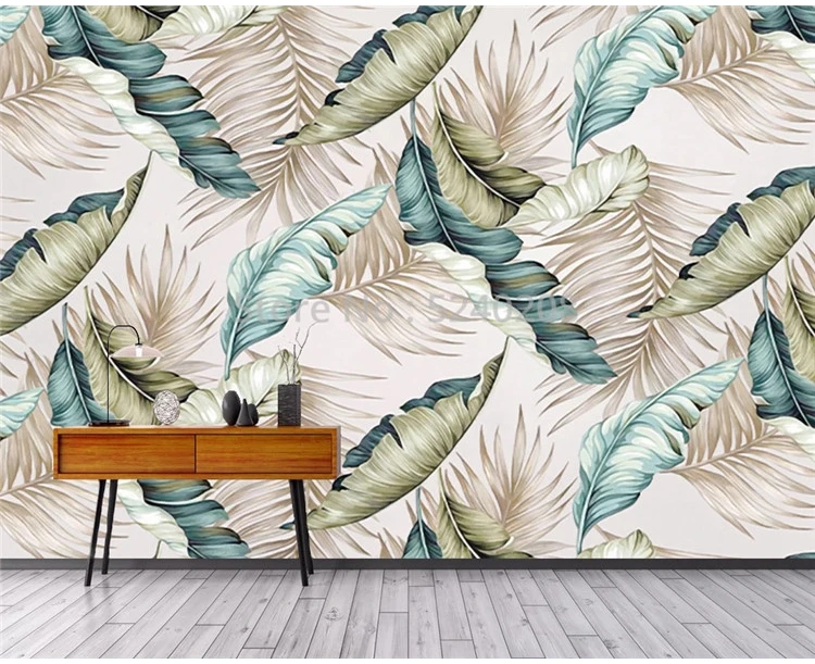 Самоклеящиеся обои на заказ, Современные ручная роспись, банановые листья, тропические леса, фрески для гостиной, ТВ, дивана, 3D наклейки на стену