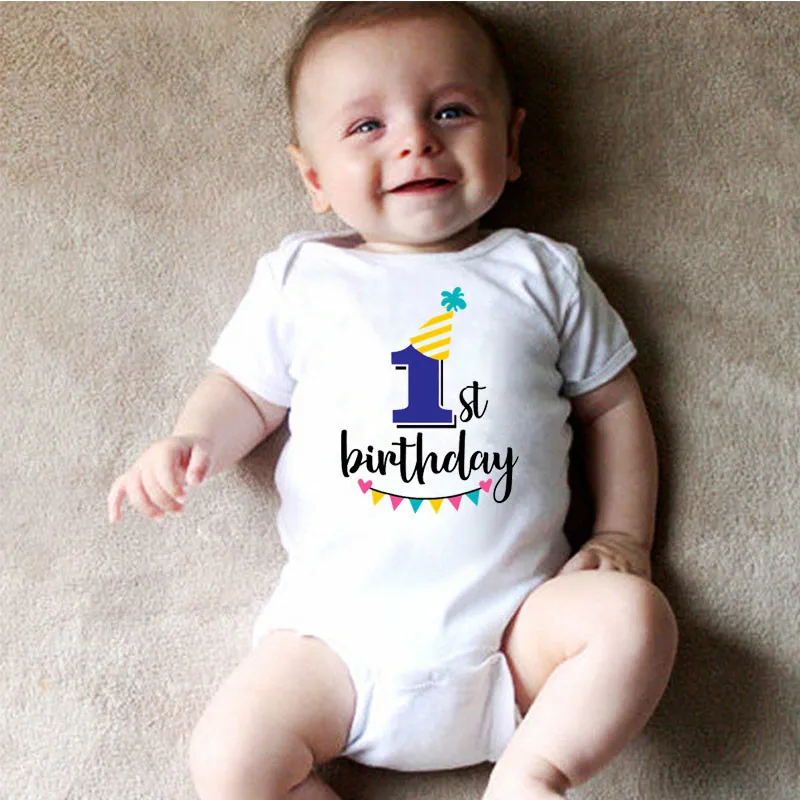 Комбинезон детский с коротким рукавом, с надписью My First Birthday, для мальчиков и девочек, вечеринка для мальчика день рождение 0-24 месяцев