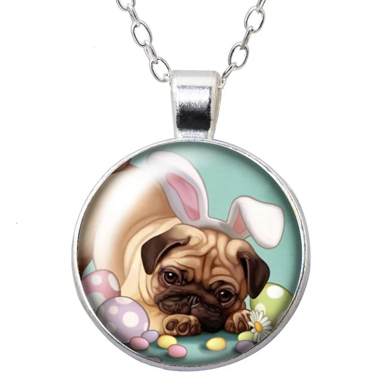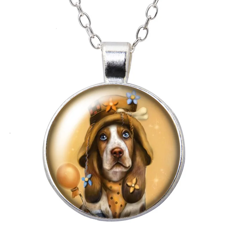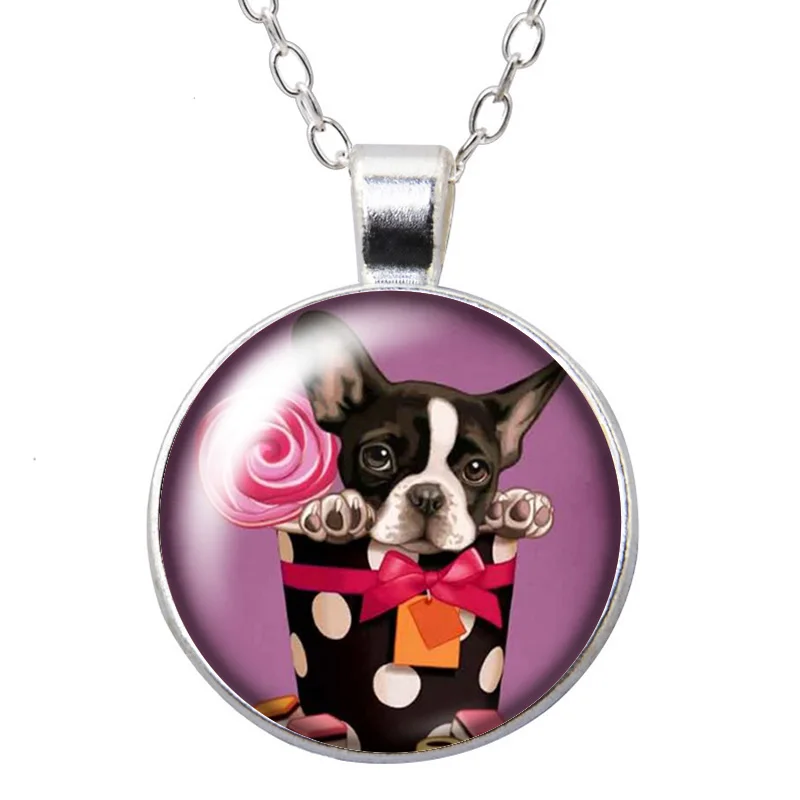 Ожерелье с круглой подвеской в виде милой собаки, любящего животного, ошейника, 25 мм, стеклянный кабошон, серебряный цвет, ювелирные изделия, подарок на день рождения для женщин, 50 см
