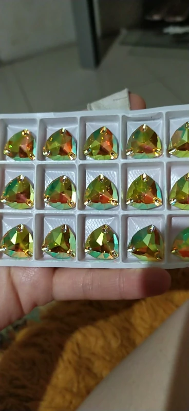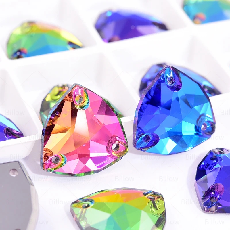 AAAAA высококачественное стекло, пришивные стразы с плоской задней поверхностью, треугольный стеклянный камень, 26 цветов, Хрустальный фотоэлемент B3889