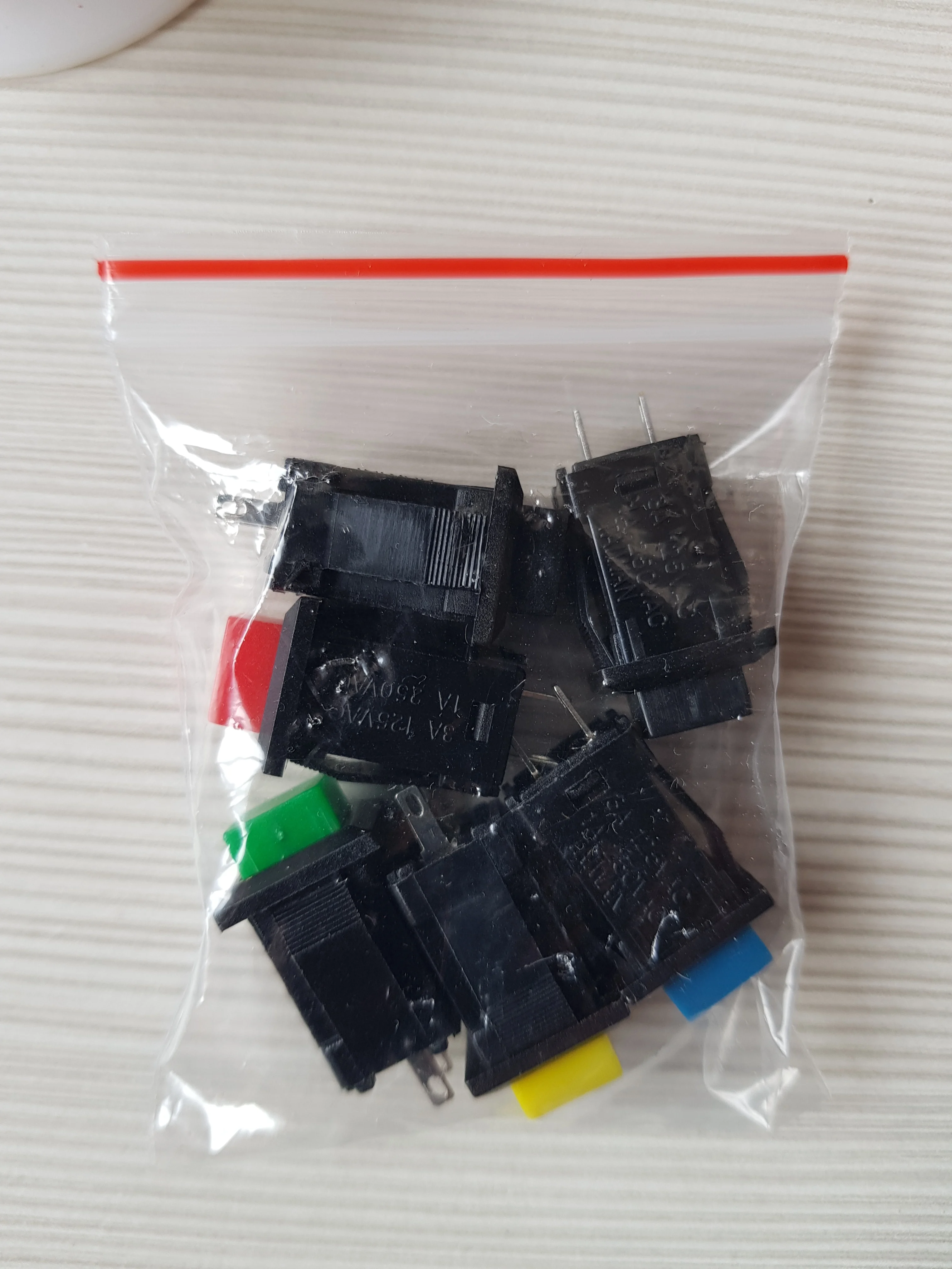 Я выбираю купить "каждый цвет 1 шт.", поэтому я ожидал получить белый, черный, синий, зеленый, красный, желтый. Вместо этого Белый Переключатель отсутствовал, а на его месте был еще один черный переключатель (что в общей сложности составляло 2). Кроме того, продукт соответствует описанию и выглядит достойного качества. Переключатели одиночный бросок полюса одиночный и они запирают на задвижку (они остаются дальше до тех пор пока вы не отжать снова). Крышка имеет некоторую игру на шасси, но это разумно, так как цена очень низкая и удобная. Доставка была очень быстрой (Доставка в Италии заняла 16 дней).