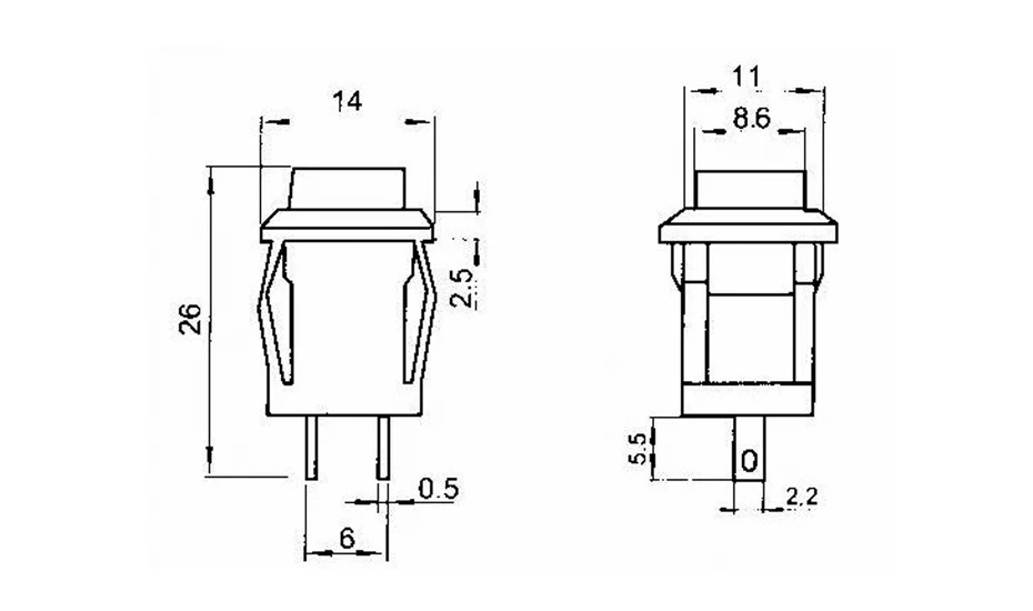 Прямоугольный переключатель ВКЛ.ВЫКЛ., 2 А, 250 В4 а, 125 В переменного тока, 6 шт., DS-429