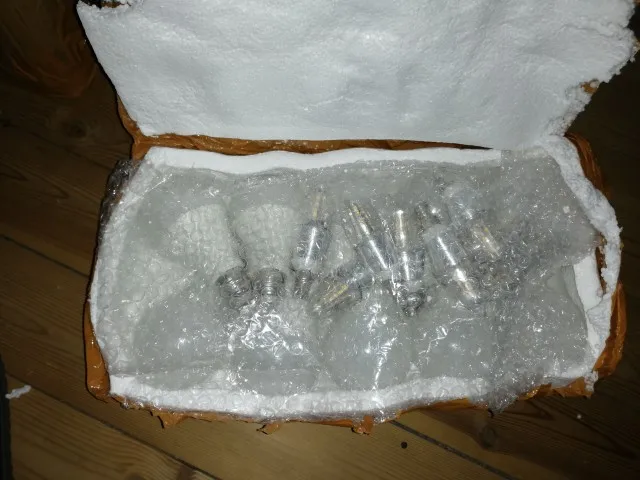 Лампы дошли быстро - за три недели . Я конечно , судя по отзывам , ожидал сюрприза , но чтобы такооое .... Брал на 3 Ватта десяток . Светят где-то на 1 Ватт как светлячки , даже в туалет такие ставить стрёмно - промахнёшься . Но упакованы хорошо и все приехали целые .