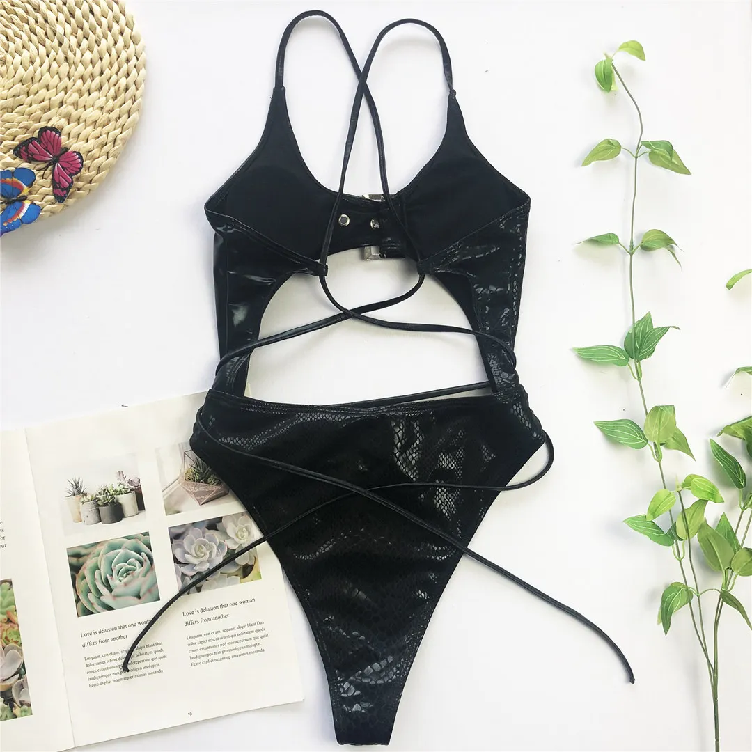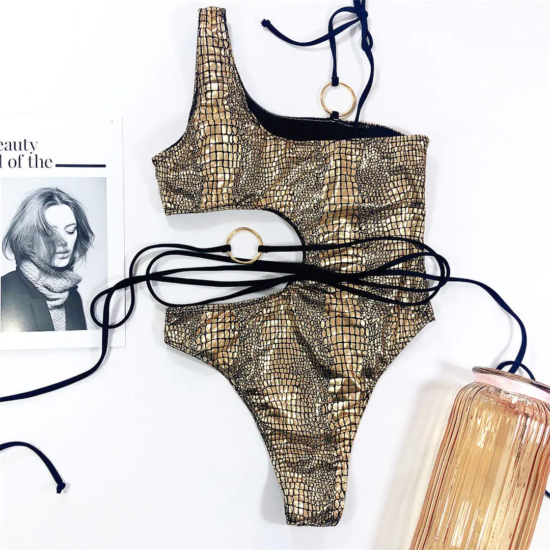 Женский слитный купальник, на одно плечо, со змеиным принтом, V1892, 2021