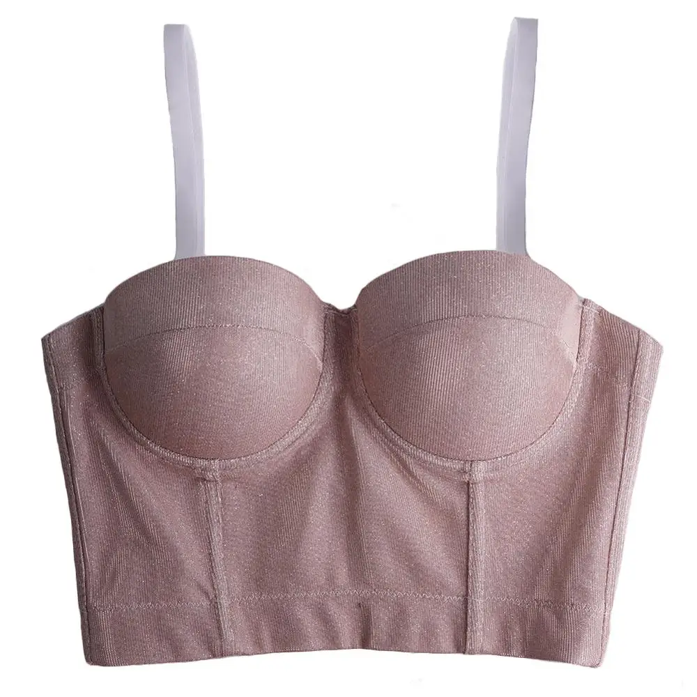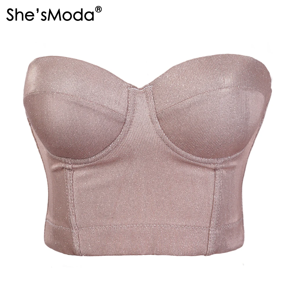Женский бюстгальтер-бюстье She'sModa, телесный, с блестками, вечерние, короткий топ размера плюс для ночного клуба