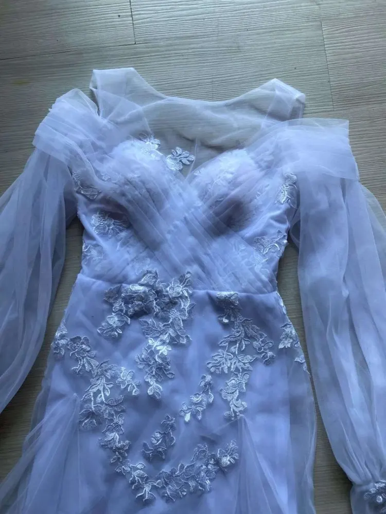 Шифоновое платье для выпускного вечера, с длинным рукавом