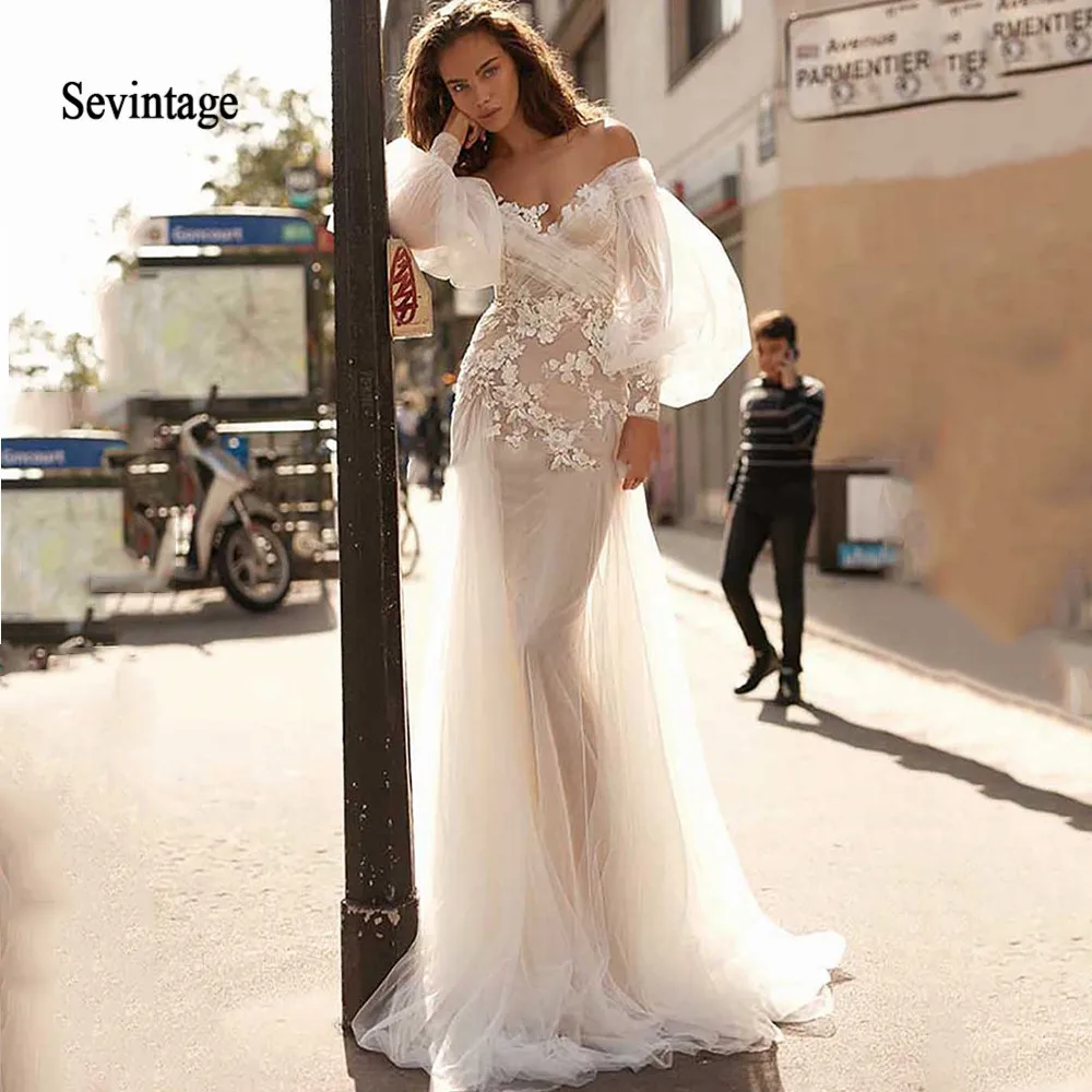 Sevintage 2 шт. свадебные платья русалки со съемным шлейфом с длинн...