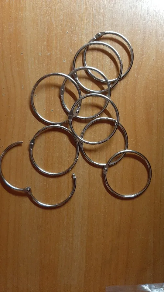 Металлические кольца для переплета листов хорошего качества. Единственное, очень тугая застежка, поэтому сняла одну звезду. Заказ пришел достаточно быстро за 3, 5 недели.