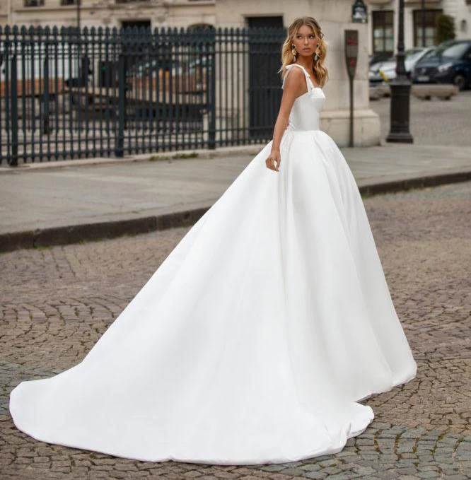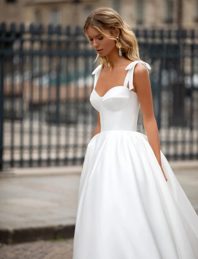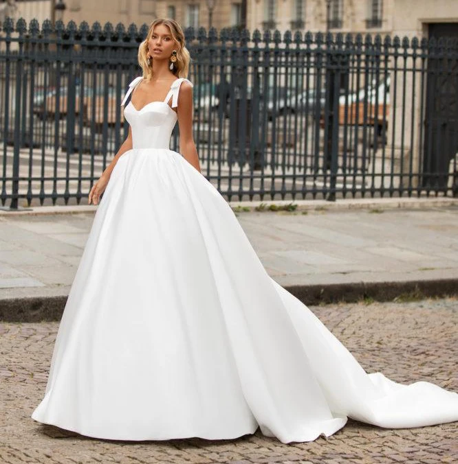 Атласные свадебные платья LORIE А-силуэта, Простые Свадебные платья без рукавов на завязках сзади, платья принцессы для свадебной вечеринки со шлейфом