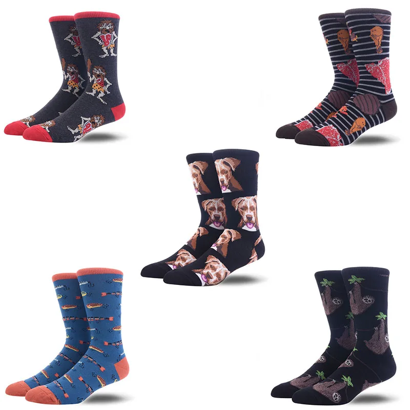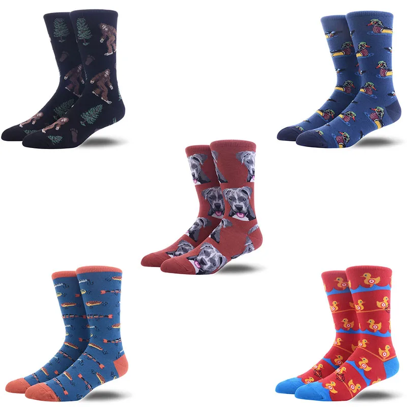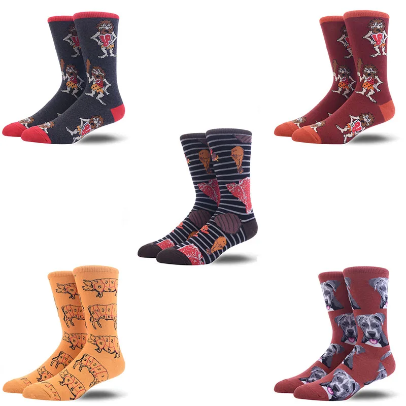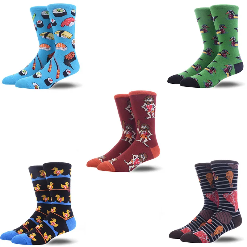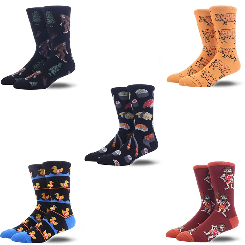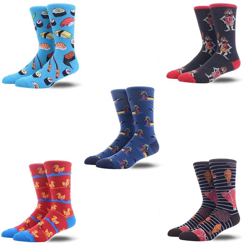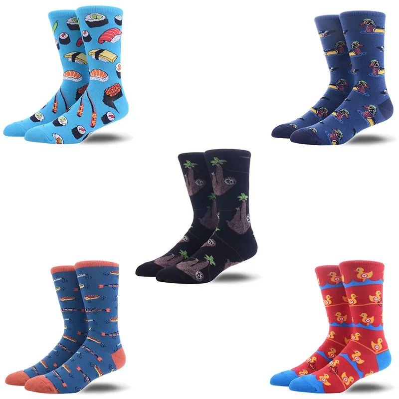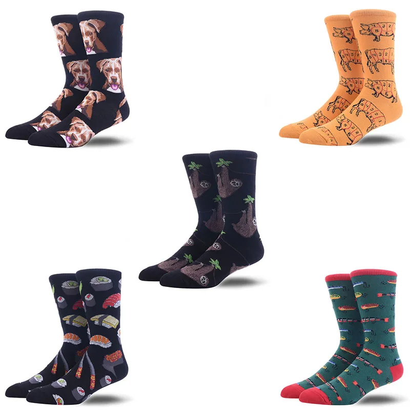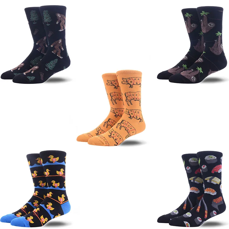 5 партлот счастливые мужские носки креативные Мопсы корова обезьяна Gorilla суши дизайнерские мужские хип-хоп мужские Веселые носки