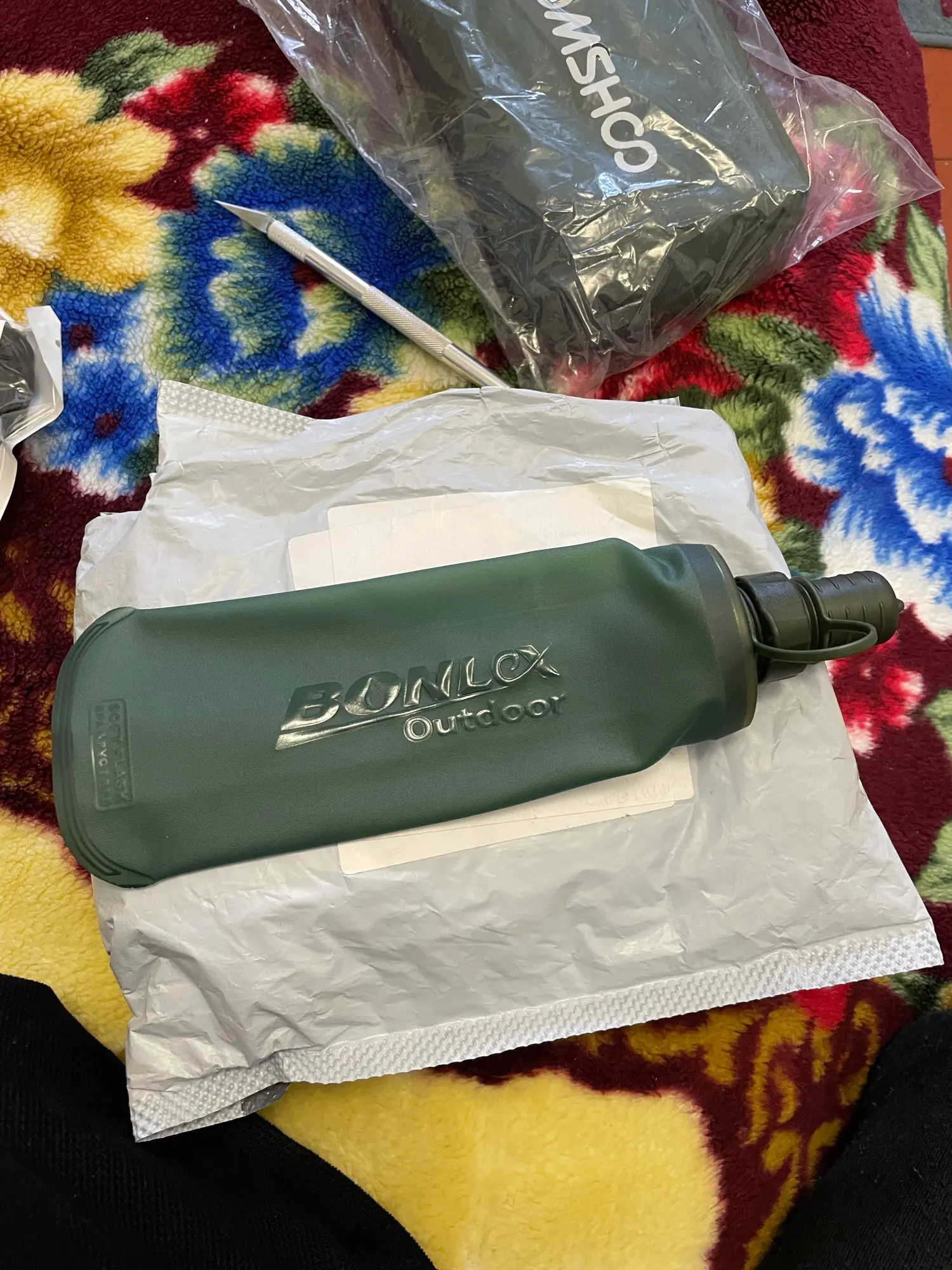 Заказ пришел быстро на удивление (либо повезло с доставкой). За 20 дней. Лёгкая, без запаха и вкуса, мнется хорошо и вода не проливается. Подходят стандартные крышки от пластиковых бутылок - большой плюс. Надо привыкнуть пить из нее - здавливать зубами дозатор воды. Качество хорошее. Описанию соответствует. Мне понравилось. Рекомендую товар и продовца.