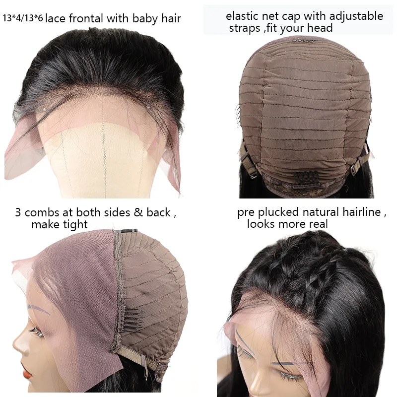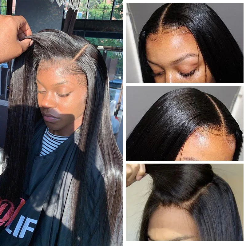 Парики из натуральных прямых бразильских волос 13X4, 180%, для чернокожих женщин