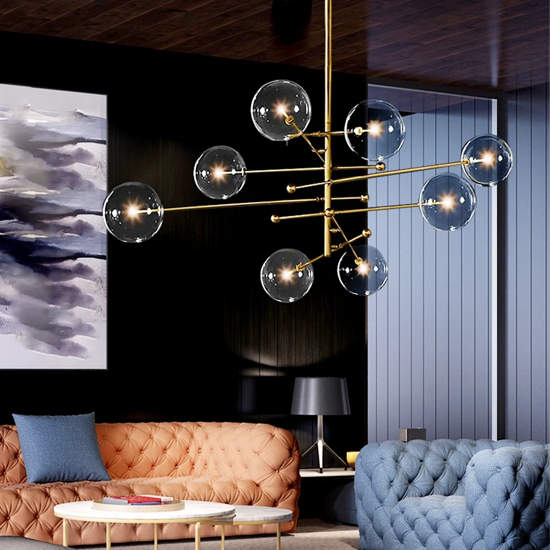 Современная Люстра для гостиной, креативная Потолочная люстра со стеклянными шариками, скандинавский подвесной светильник ильник с креплениемподвеской
