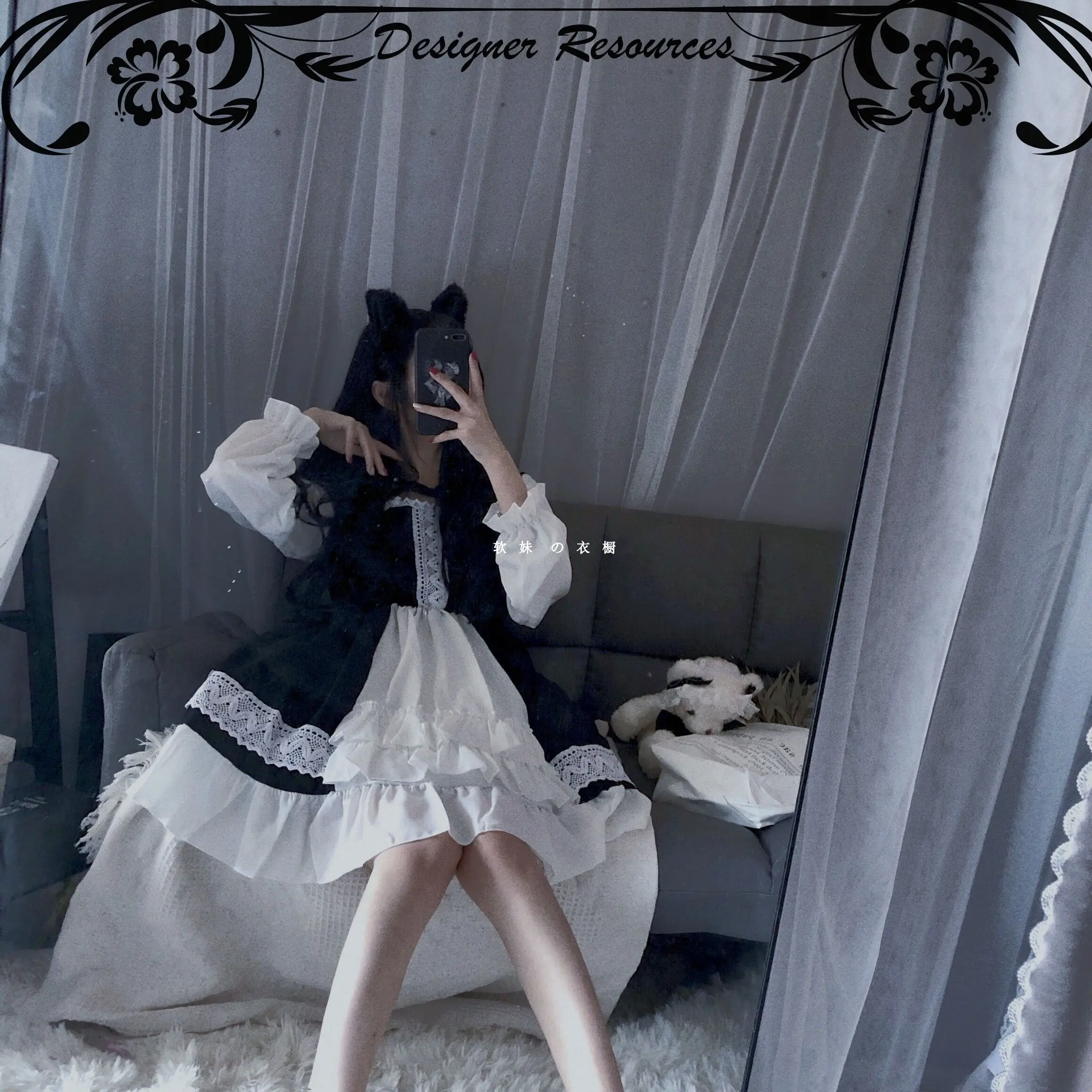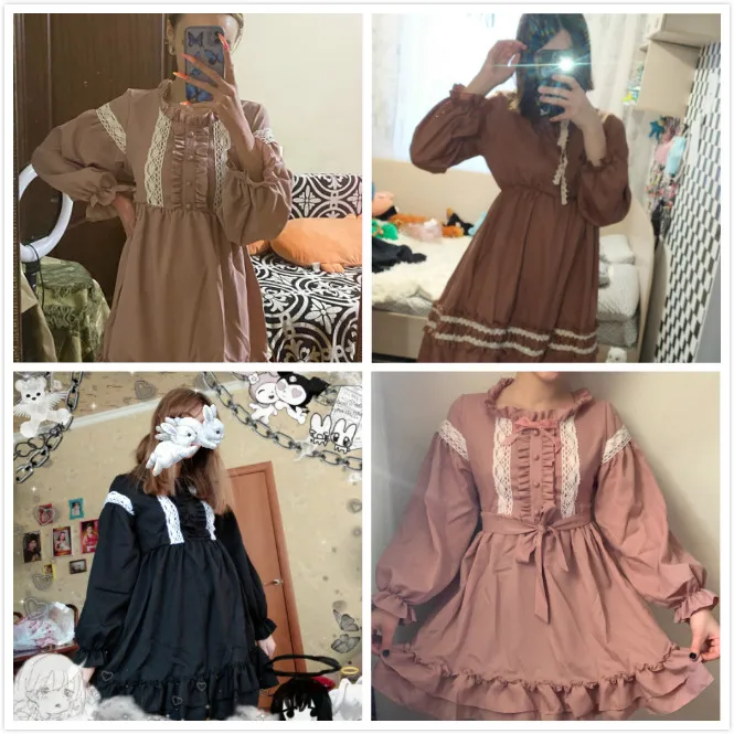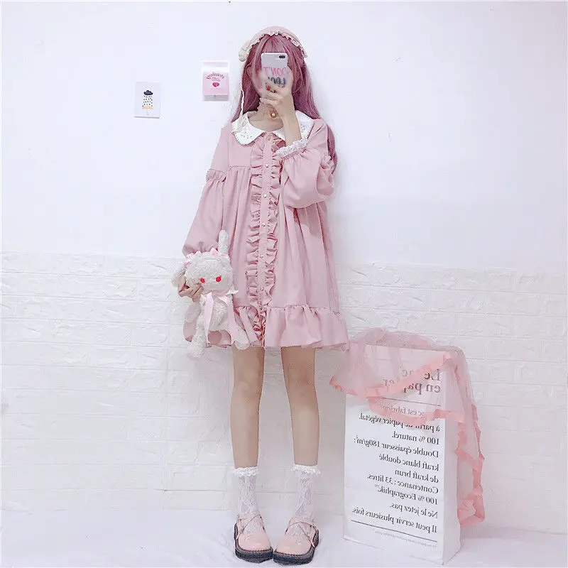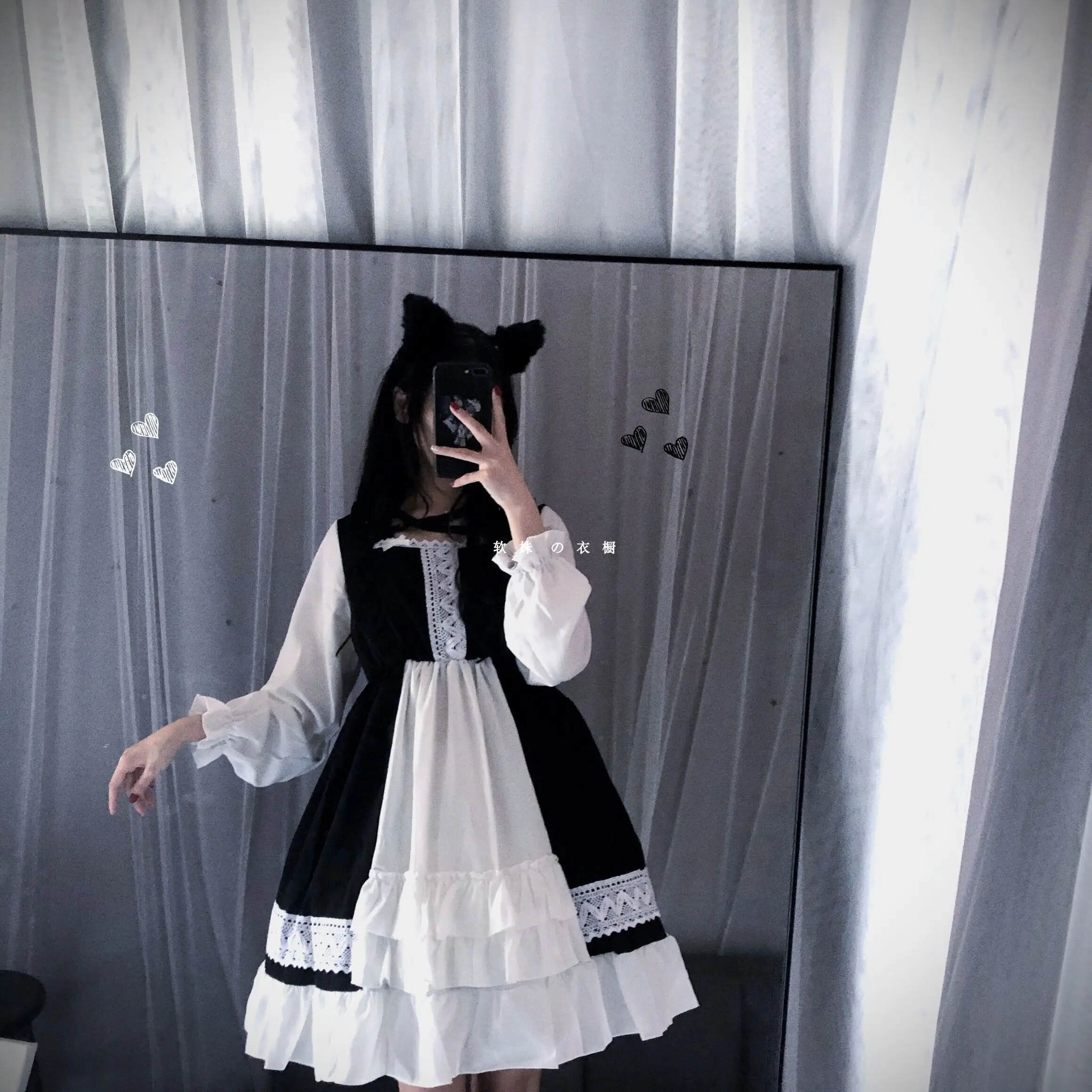Алиса в стране чудес Симпатичные женщин Лолита платье OP Flouncing кружевной отделкой Японский Harajuku Длинные рукава куклы платье Фея Vestidos
