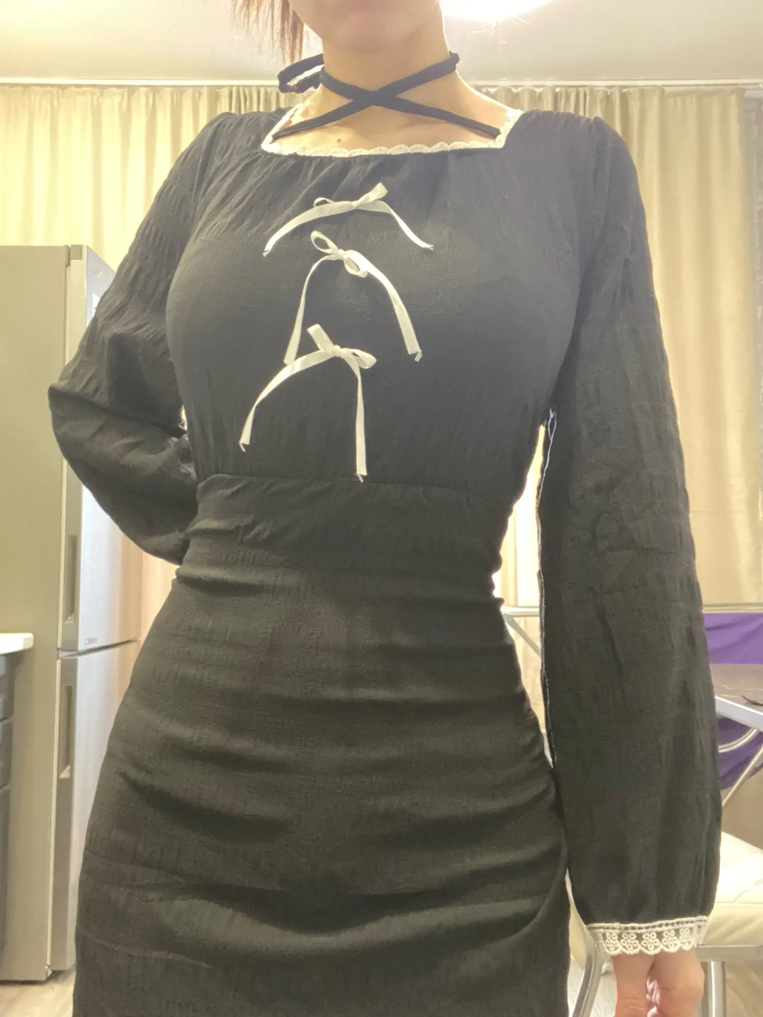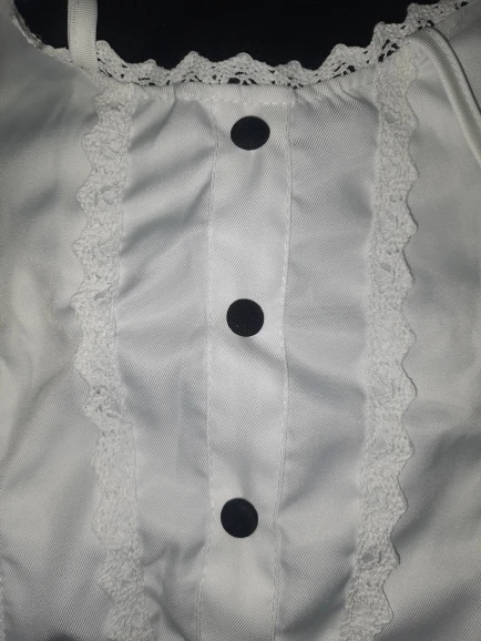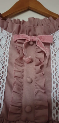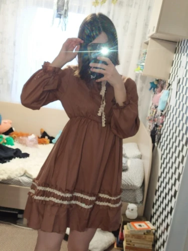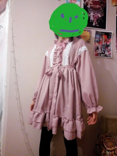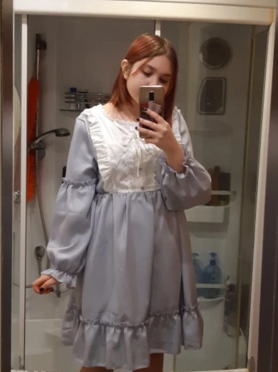 The material of this dress is very lovely, and it's a very pretty dress. However the display image was somewhat deceptive as this dress is extremely short compared to what the display shows. I'm 148cm, so I'm in no way tall and it's still very short. The waist line of the dress is also at the chest rather than the waist so make sure that's what you want before you buy it. And don't put your arms up if you're wearing this hahaha... Bit like an oversized shirt rather than a dress. Still pretty though.