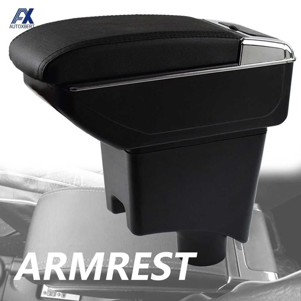 Для Renault Dacia Sandero I Logan Storage Box Интерьер подлокотника подлокотника интерьера двухслойные Черная кожа Пепельница