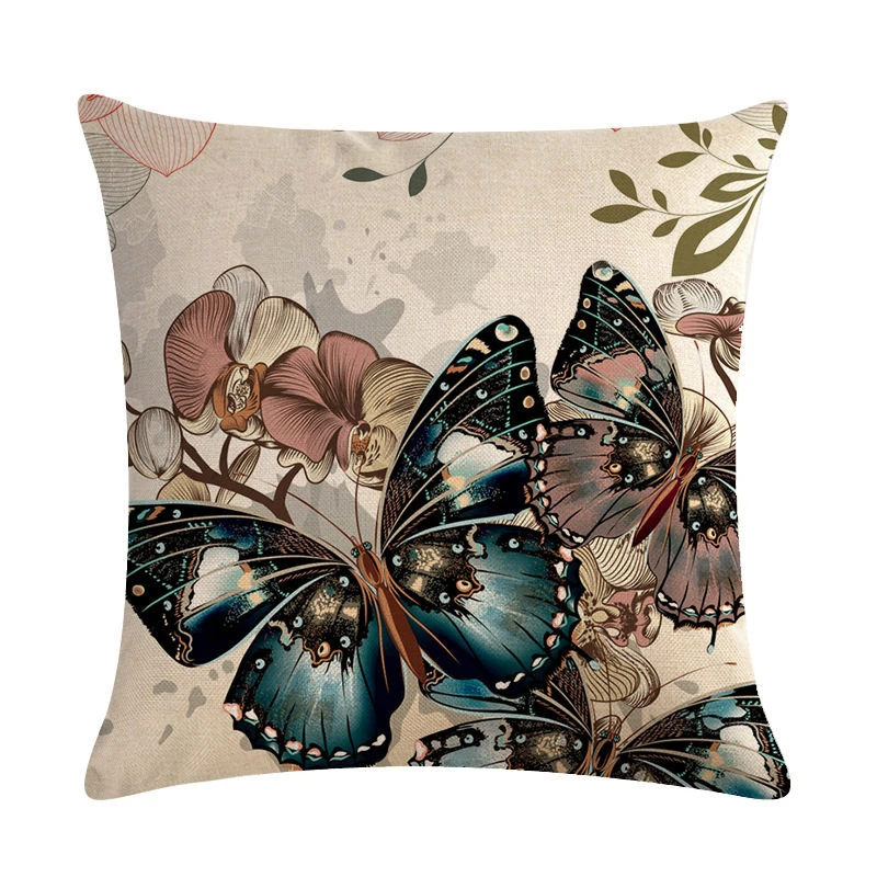 Наволочка для автомобильной подушки, с рисунком бабочек, из хлопка и льна, декоративная наволочка Funda Cojin, на диван-кровать для дома, 1 шт.