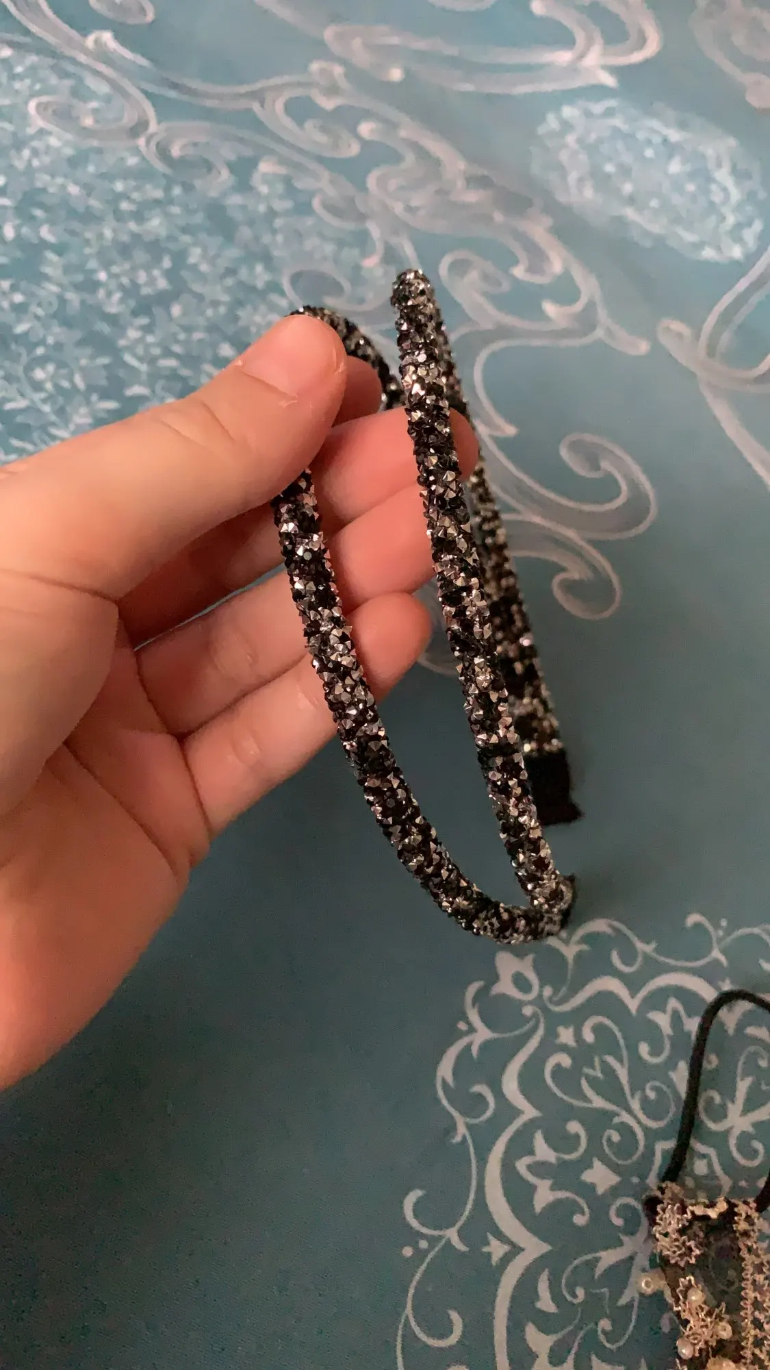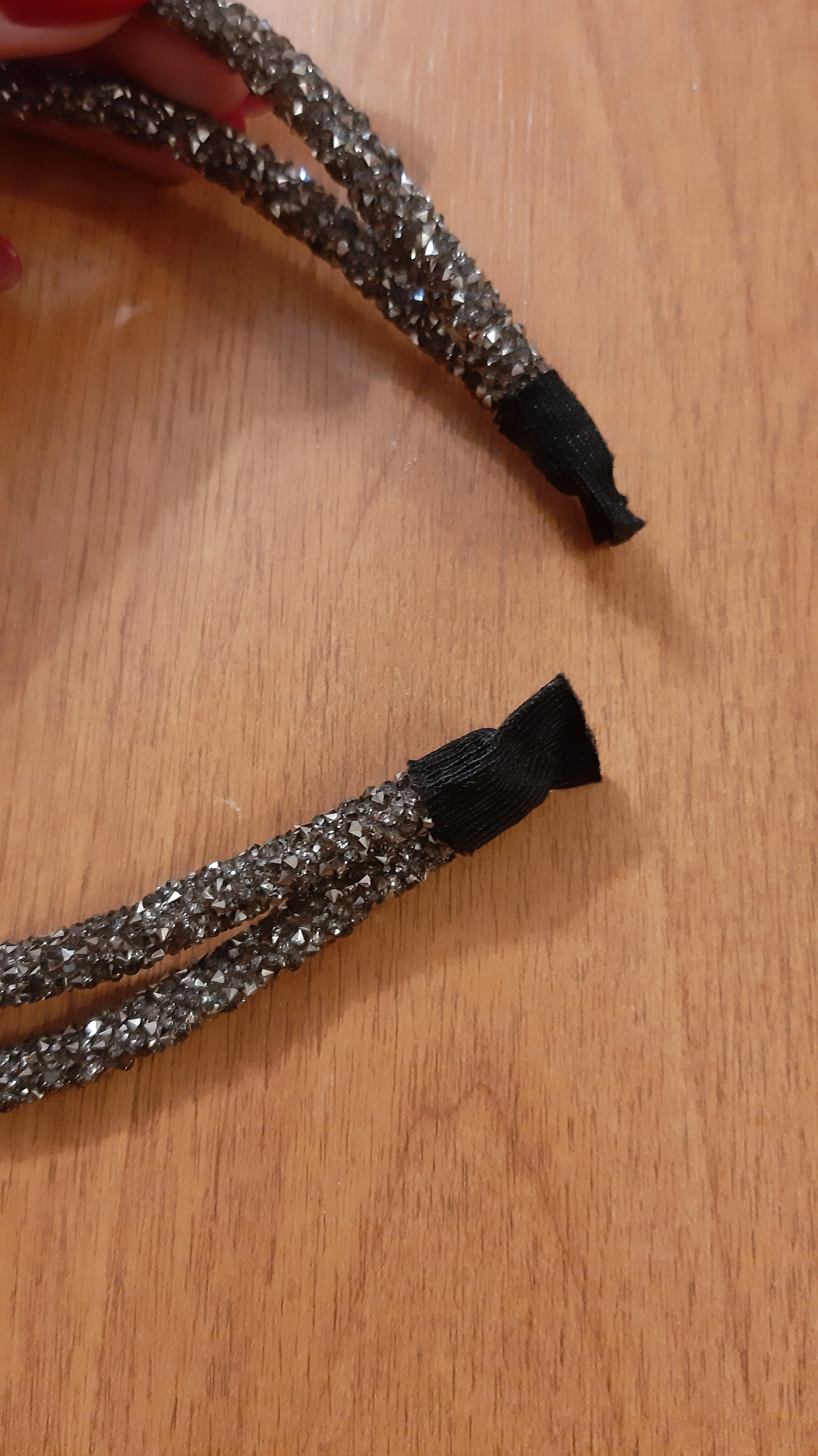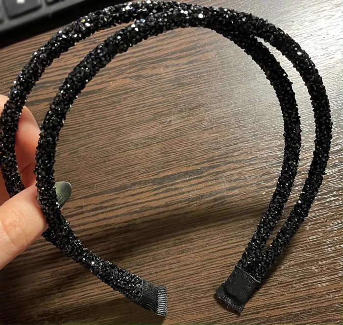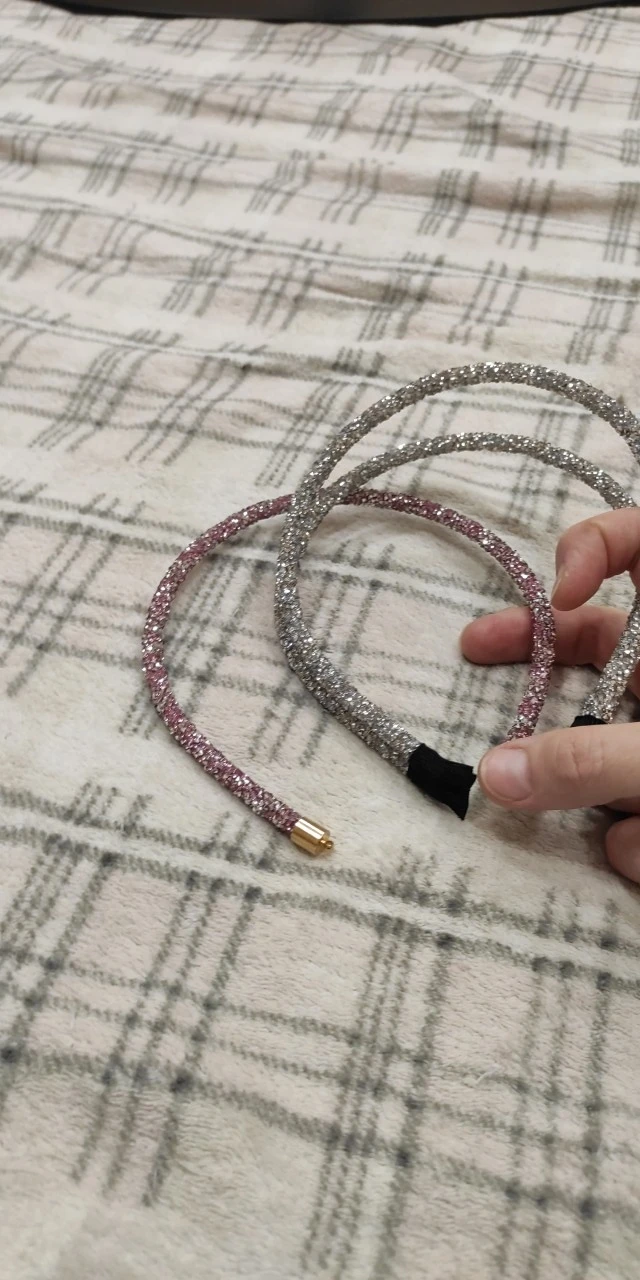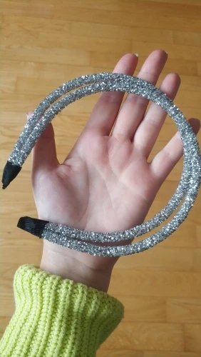 обруч выглядит как на фото, красиво переливается, блёстки не сыпятся.на краях обручи приклеены только тканью - думаю это не очень долговечно и края разойдутся. это ободок для красоты, а не держать волосы. в целом, довольна покупкой, очень красиво будет выглядеть вечером!