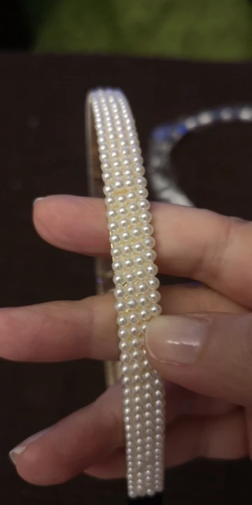 Я думала что придёт с камнями, пришёл с жемчугом, может я ошиблась, ободок соевой стороны чуть кривой а так вполне хороший, изъян не видно