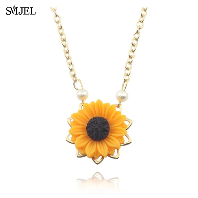 Женское Ожерелье SMJEL, винтажное круглое ожерелье в стиле бохо, ожерелье с подсолнухом