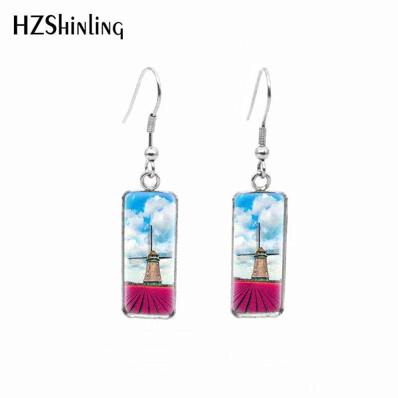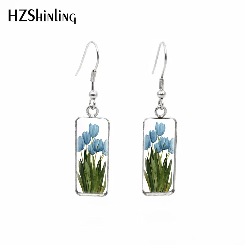 Серьги прямоугольные с цветами, цветами, цветными поднимающими настроение тюльпанами, стеклянные украшения, 2019