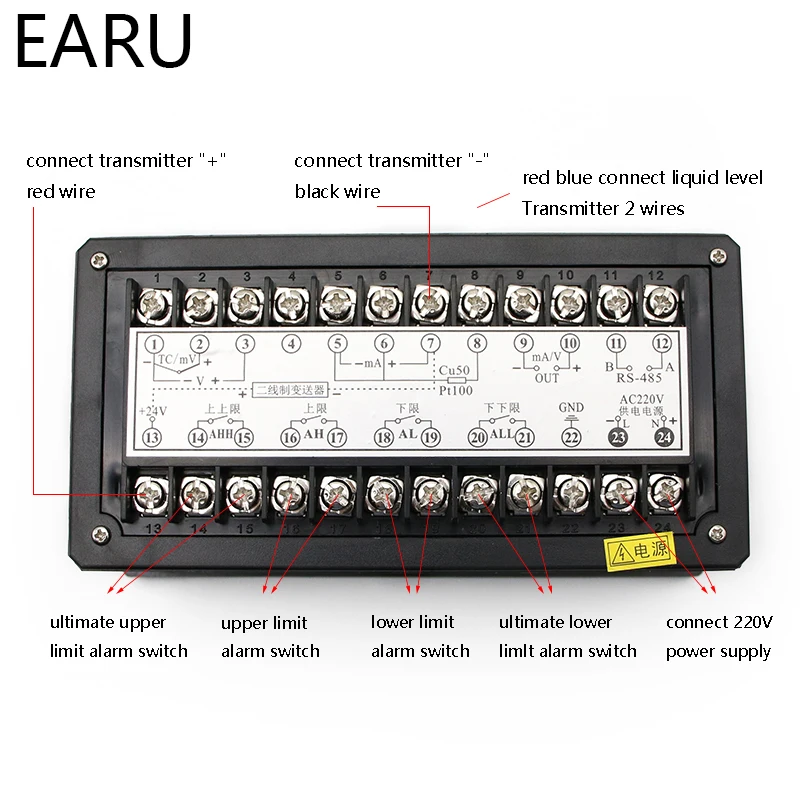 1. Питание: AC22-230V 2. Вход: Универсальный вход, PT100, J, K, 4-20mA, 0-5V, 0-10V и так далее .. 3. Выход: 2-сторонний релейный выход с питанием DC24 4. Применение: контроль температуры, уровня жидкости, давления жидкости или газа и так далее.