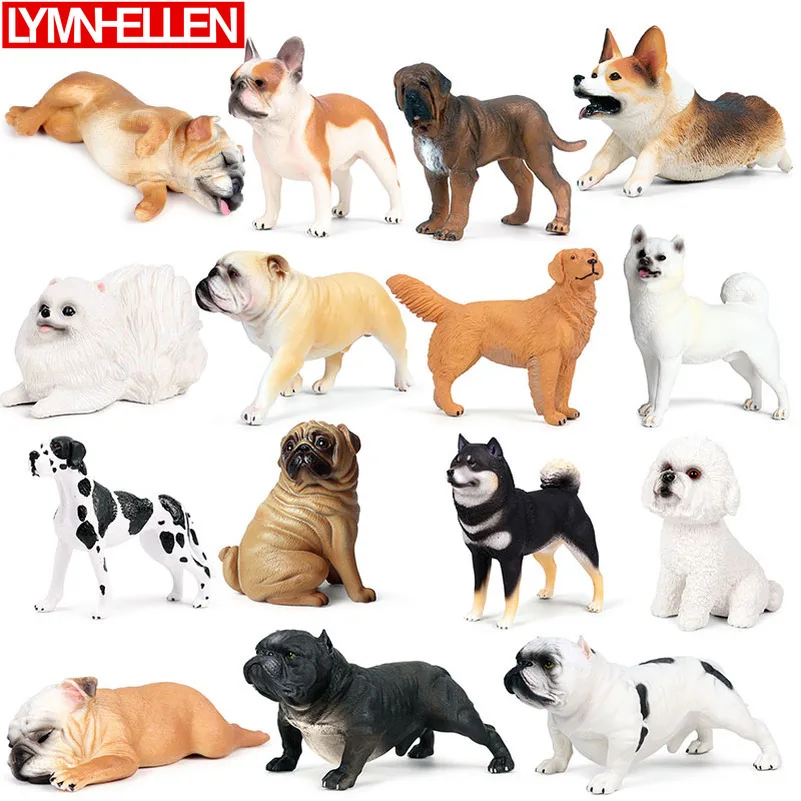 Имитация модели для собак с дикими животными, корги, мопс, бульдог, померанский пудель, Сиба-ину, фигурка, украшение, детские игрушки, подарки