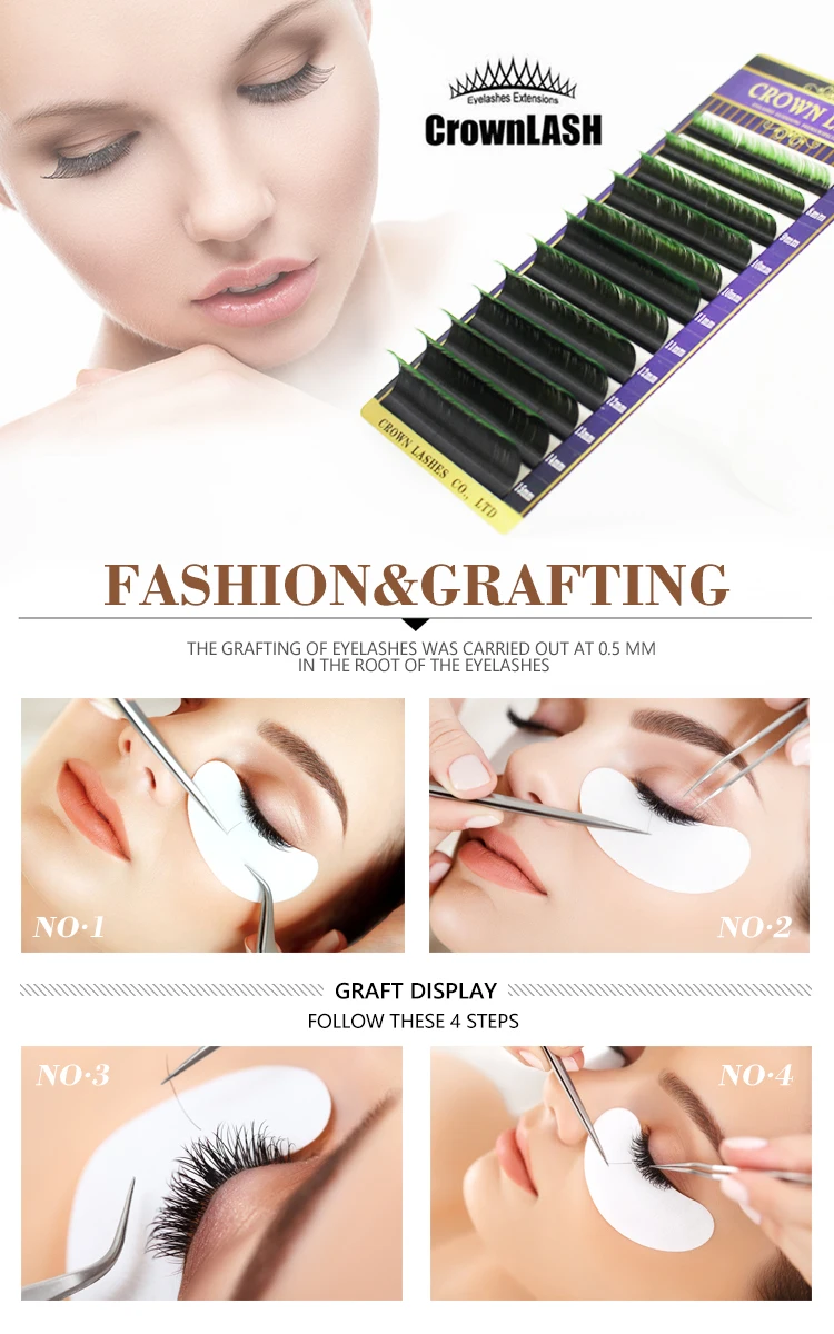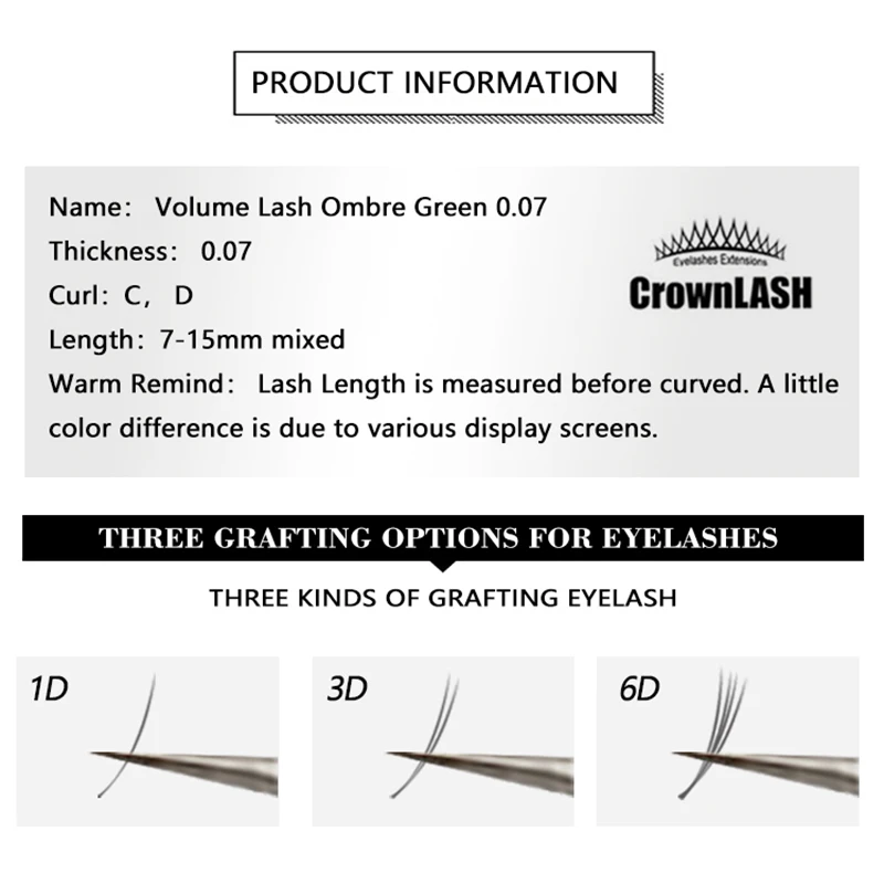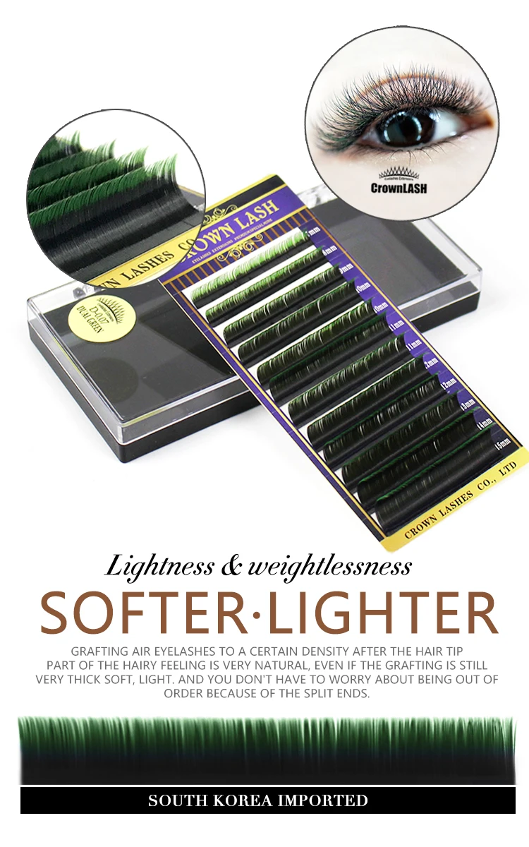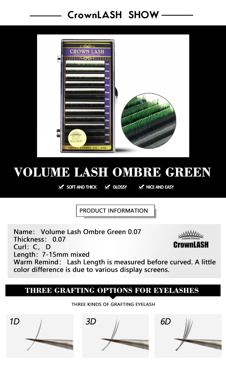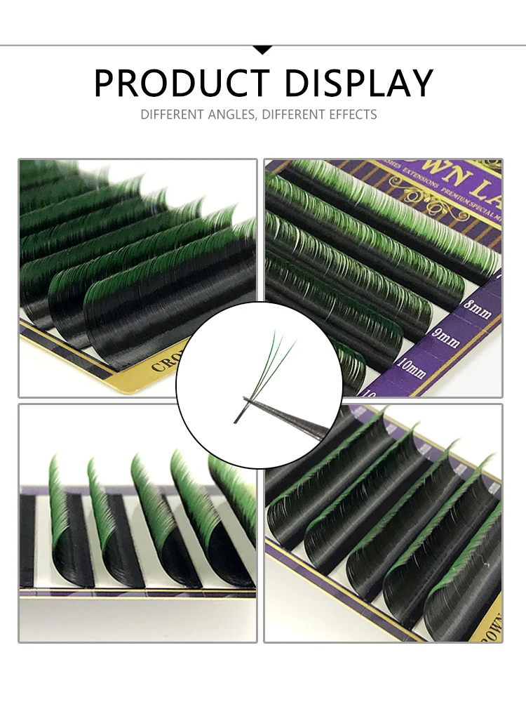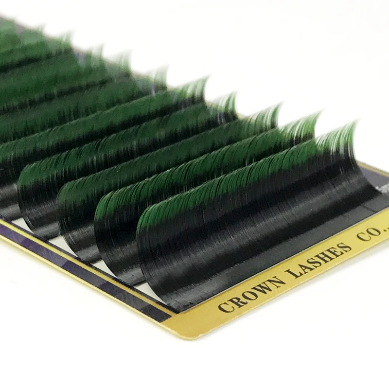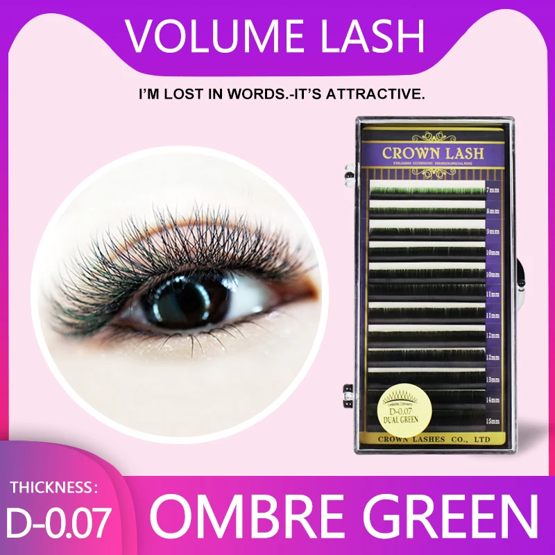 Омбре зеленый C D 0,07 7-15 мм 9 размеров смешанный лоток CrownLASH 2 тона двойной цвет шелковистый объем ресниц расширение Бесплатная доставка