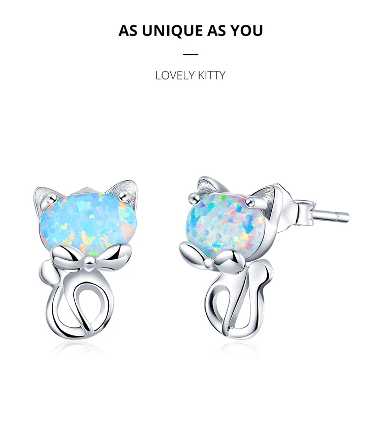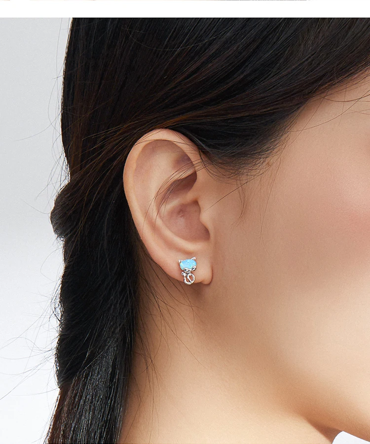 Bamoer, серьги-гвоздики из натуральной 925 пробы, серебро, синий опал, милый кот, для женщин, модные ювелирные изделия в виде животных, подарки для девочек, SCE828