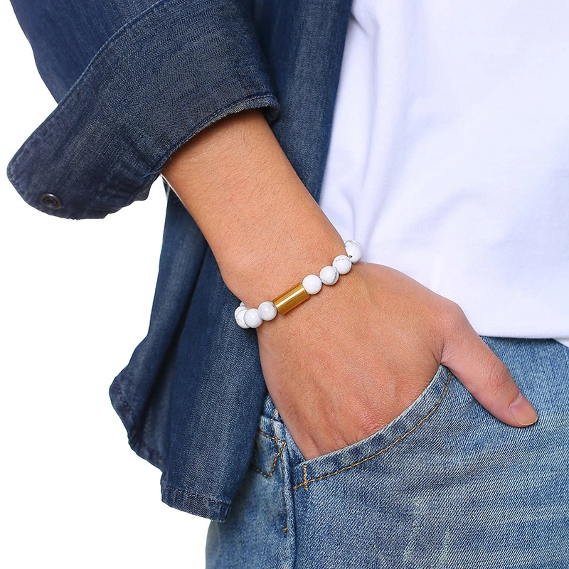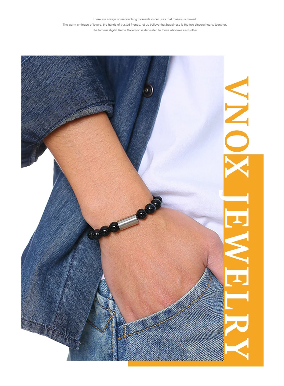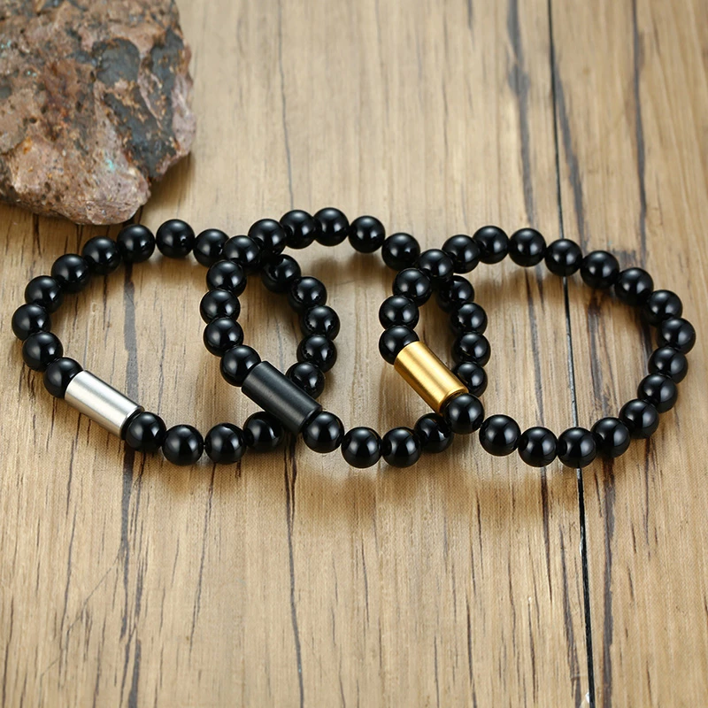 Браслет с бусинами из нержавеющей стали для мужчин и женщин