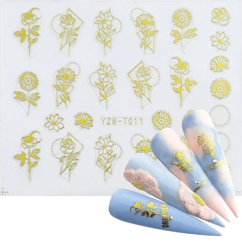 1 лист 3D наклейки на ногти цветок буквенный дизайн Смешанные узорами, дизайн ногтей переводные наклейки для дизайна ногтей сделай сам