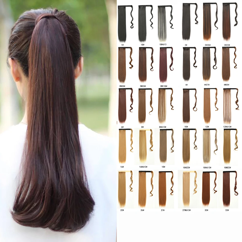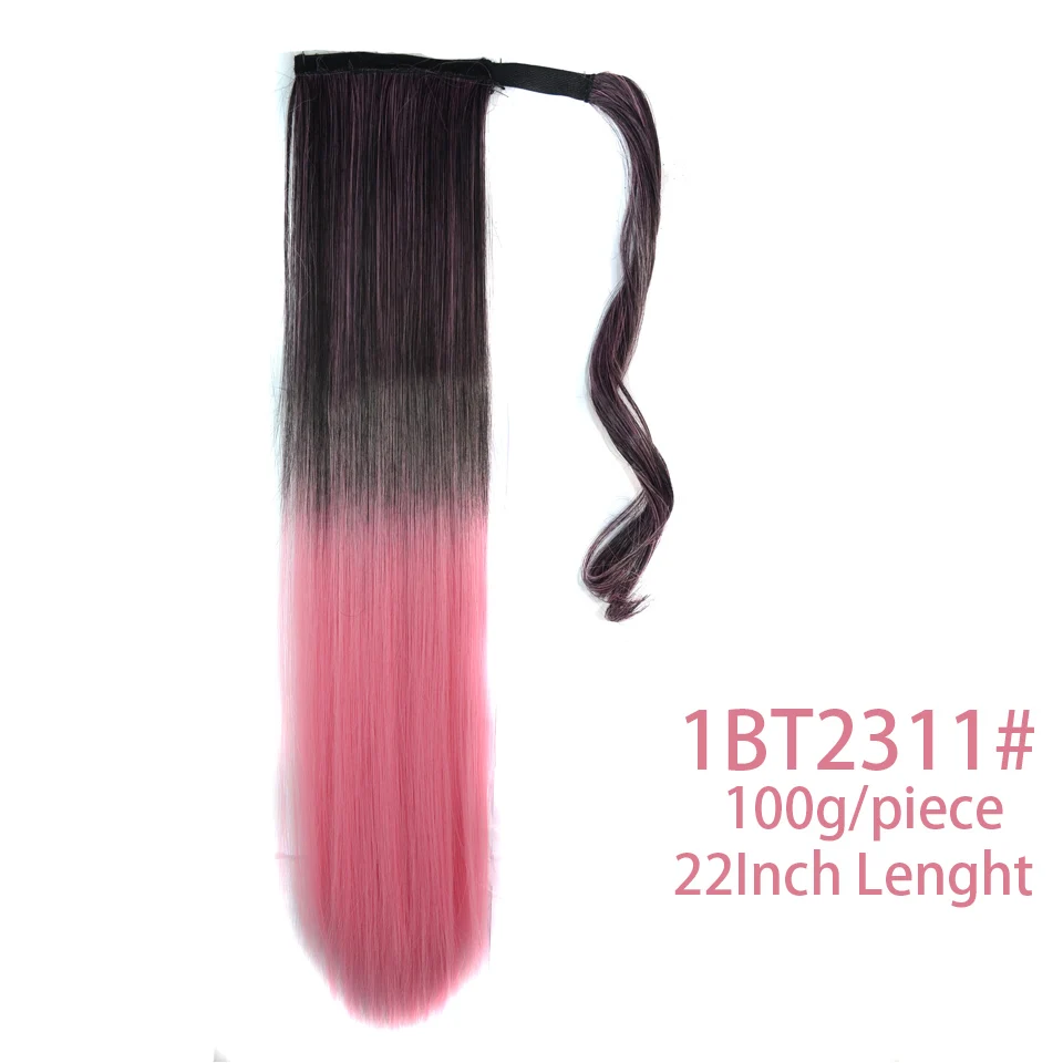 22-дюймовые синтетические волосы термостойкие прямые волосы с конским хвостом удлиненные волосы Омбре черные коричневые головные уборы