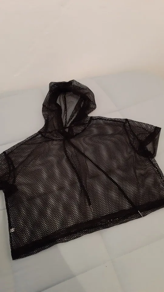 Женская ажурная Сетчатая футболка с капюшоном, футболка с коротким рукавом, Прозрачная черная Клубная одежда Swxy для вечеринки