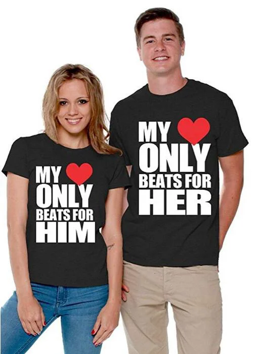 Футболка с надписью My Heart Only Beat for Him Her, подарок на День Св. Валентина, для пар, футболка с надписью его и ее любовь, совпадающие парные футболки