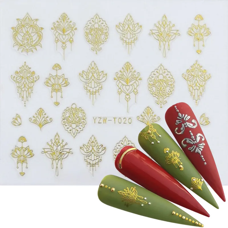 Новинка 1 шт. голографические золотые 3D наклейки для ногтей лист к...