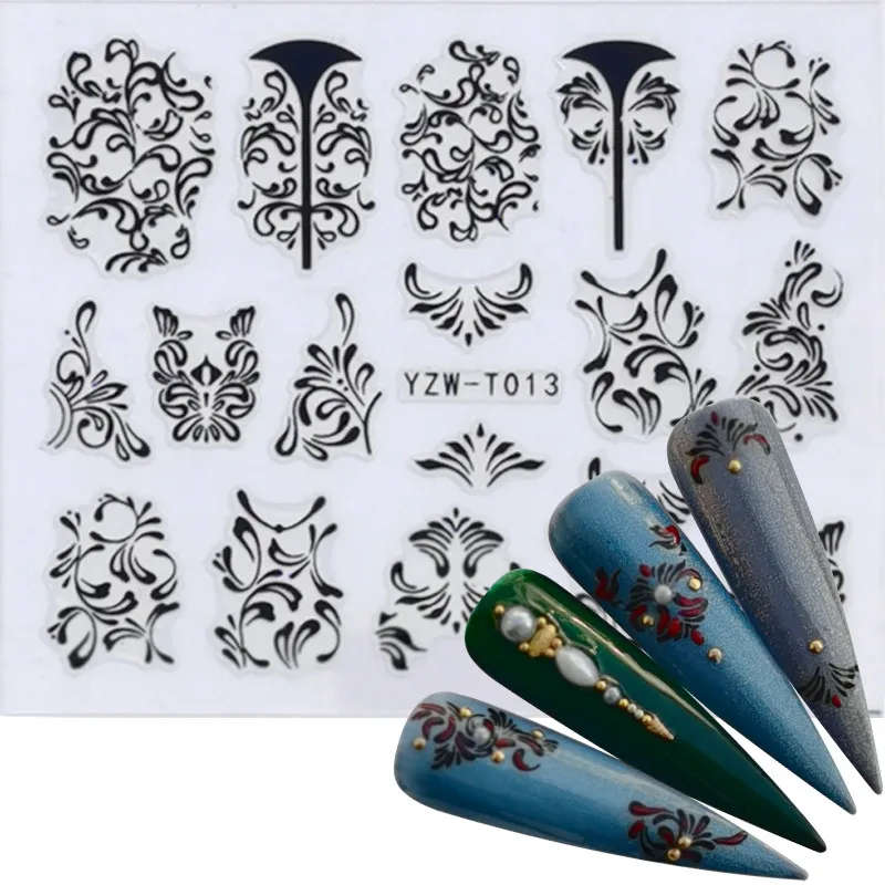 1 шт. Фольга для ногтей слайдер 3D наклейка Черное золото растение ...