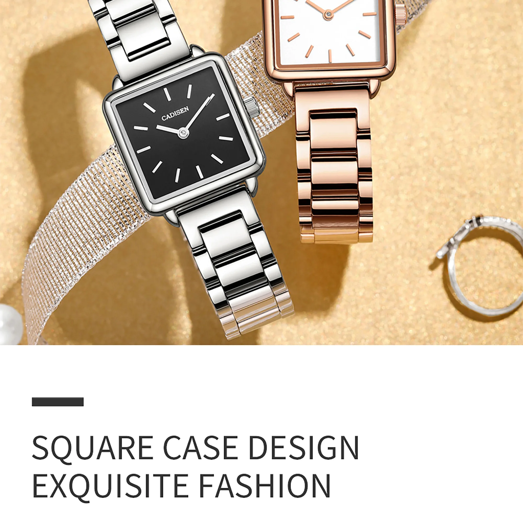 Женские кварцевые часы CADISEN, роскошные квадратные часы цвета розового золота, подарочные водонепроницаемые часы с простым дизайном, 2020