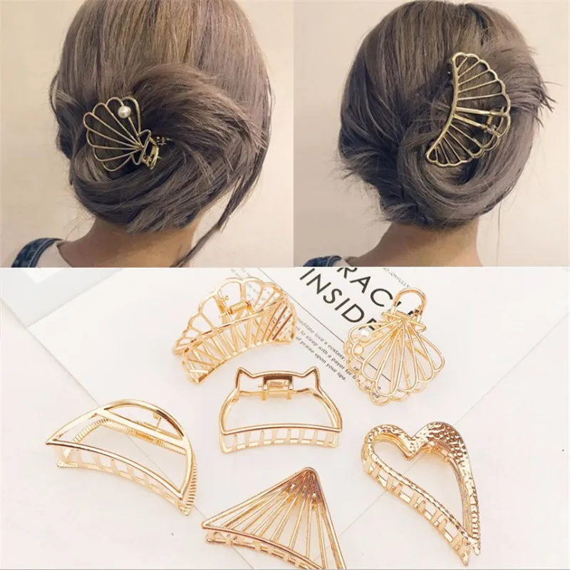 Заколка-краб для волос женская, однотонная, в форме полумесяца